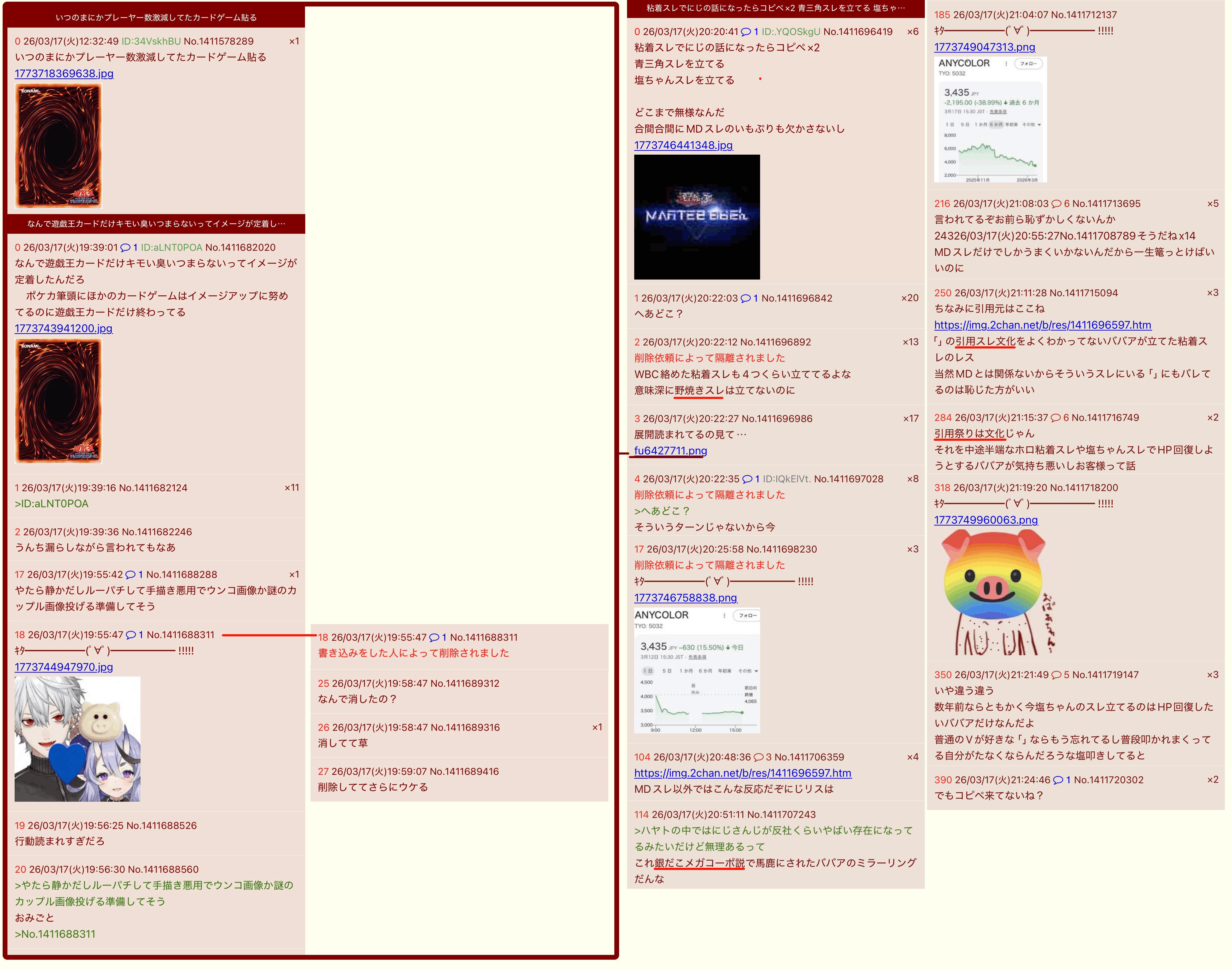 | … | 6026/03/18(水)21:38:41No.1412012954+粘着荒らしは麻薬ですね |