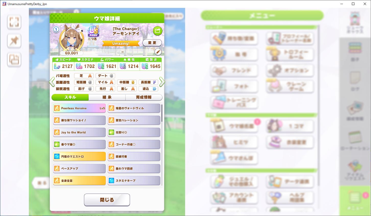 | … | 1126/03/19(木)01:42:10No.1412086403+何も考えずにアイちゃん育ててたら切れ者2回引いた上にステータスもスキポもこれまでの育成で最高の個体が出来てしまいました |
