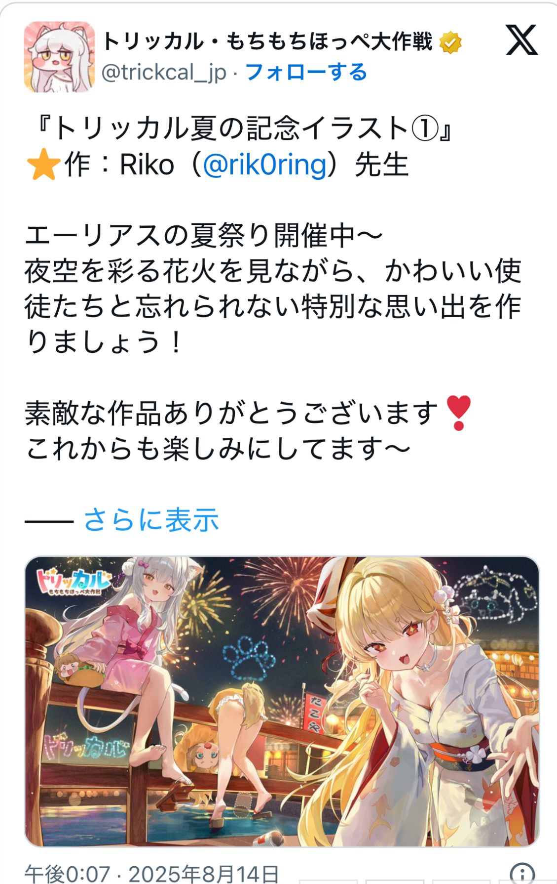 | … | 2426/03/19(木)11:00:02 ID:/eRLoSJ2No.1412136902+トリッカル…サービス終了… |