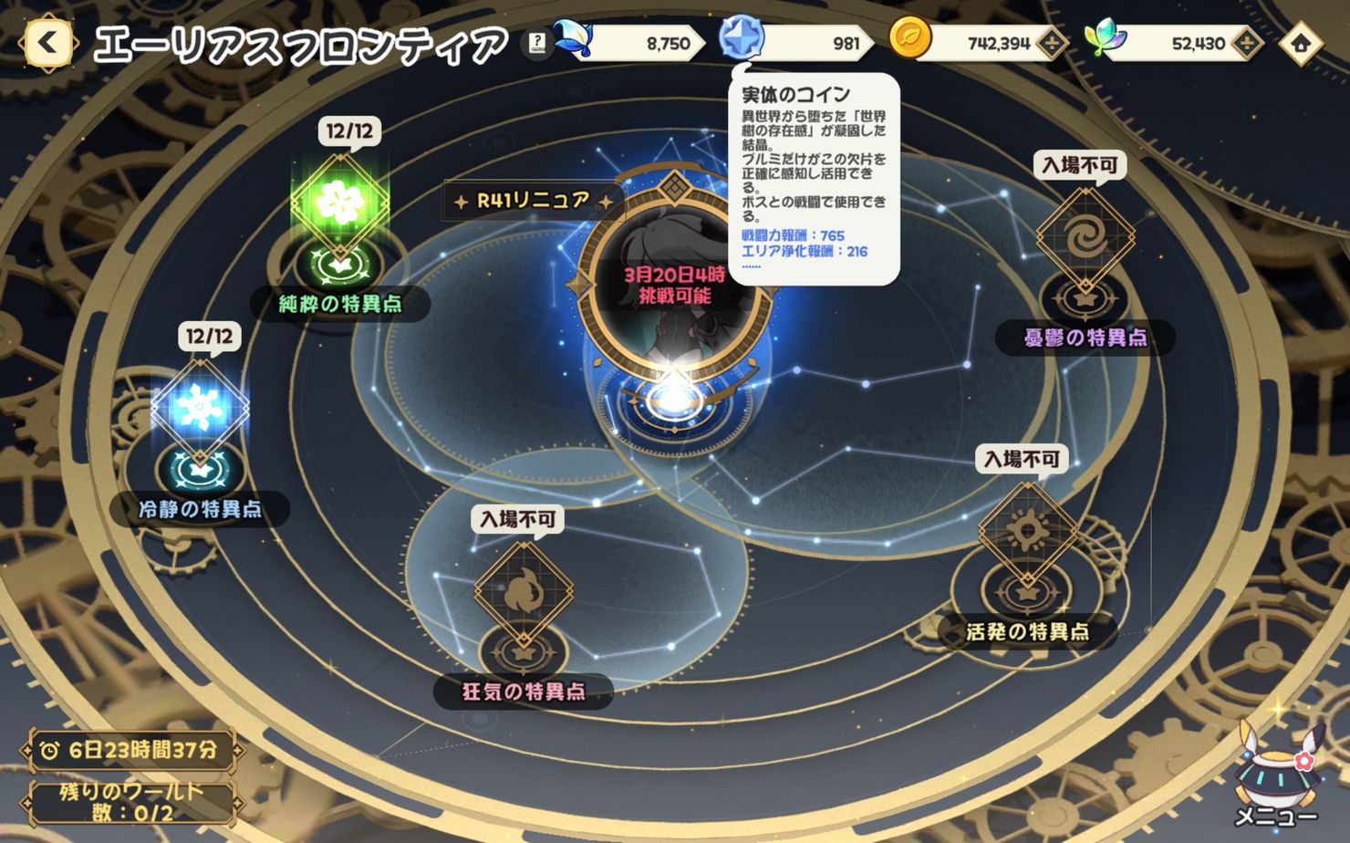| … | 49626/03/19(木)12:35:05 ID:tKc45vBYNo.1412159856+全属性同じくらいの戦力があるとした場合属性特異点はどこに行くのがおすすめにゃん? 活発特異点は敵が1体だからモモが居れば背伸び出来るみたいに多少は違いあるみたいだしにゃん |