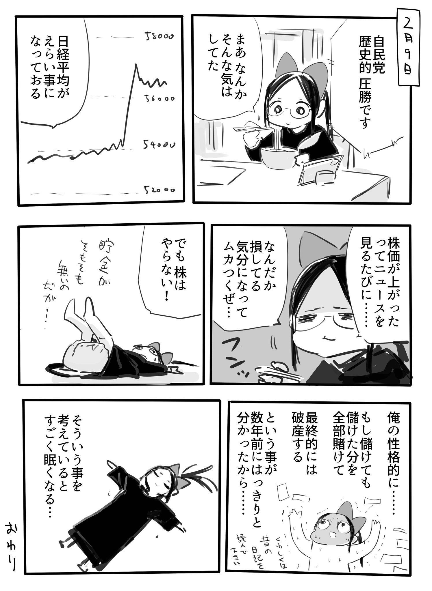 | … | 726/03/19(木)18:33:27No.1412237389そうだねx3描いてる漫画よりも株で大損こいてる日記漫画の方でimgでは知られていた漫画家 |