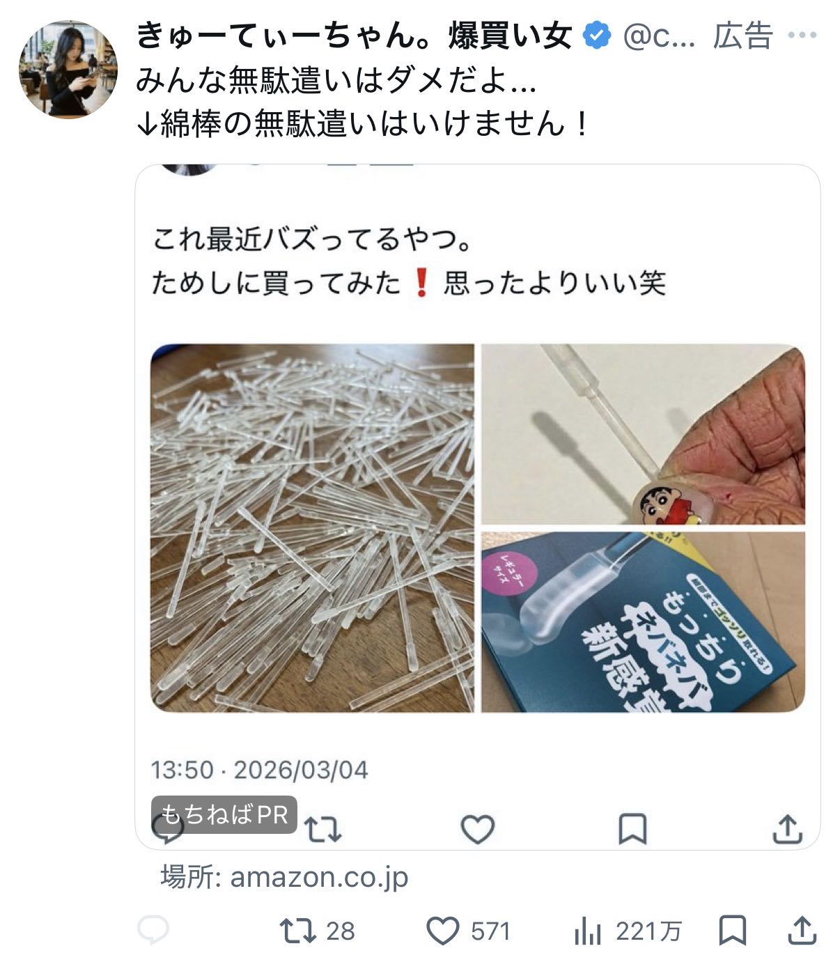 | … | 2026/03/19(木)19:50:58No.1412260312そうだねx1最近増えた普通の呟きと画像に見せかけた商品リンク広告に比べたら広告であること隠してないだけまだマシ |