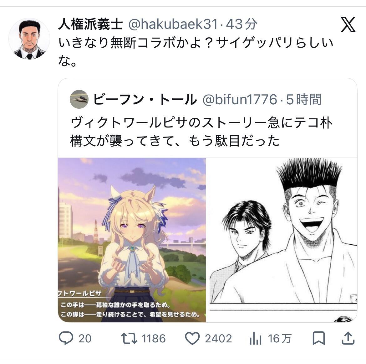 | … | 6926/03/19(木)21:13:46No.1412290630そうだねx1ウマ娘をタフとテコパクが支える |