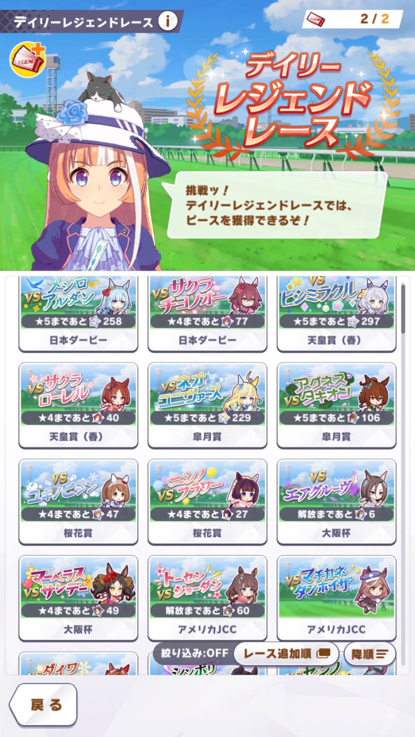 | … | 43926/03/20(金)05:32:58No.1412386970+おはいも〜レジェンドレース追加されてますね |