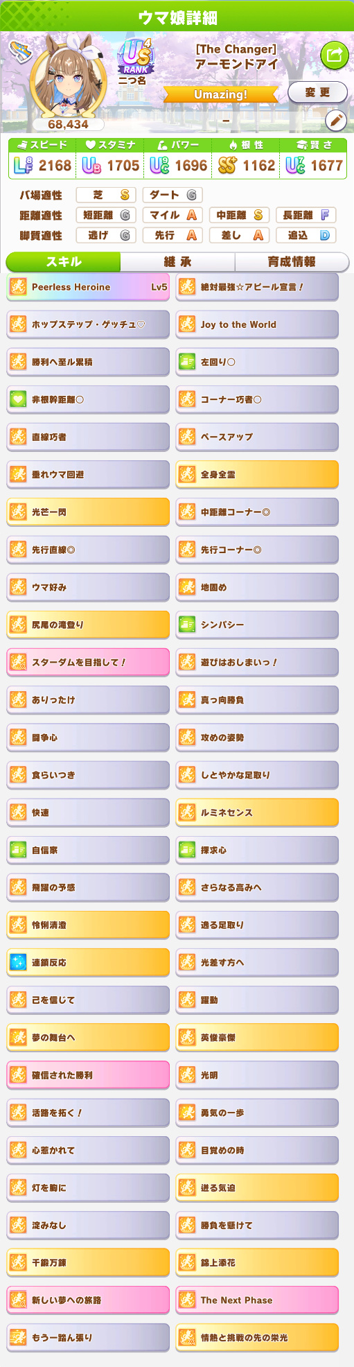 | … | 2526/03/20(金)06:40:21 ID:BX6Dfb5cNo.1412389826+>今からチャンミ育成なんですけど金スキルは光芒一閃と時中の砂のどっちがいいんですか? |