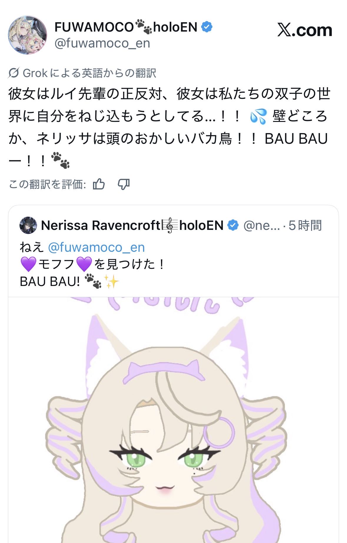 | … | 3426/03/20(金)11:32:57No.1412434464+>最近のフワモコのネリッサに対する態度が本当に酷い |