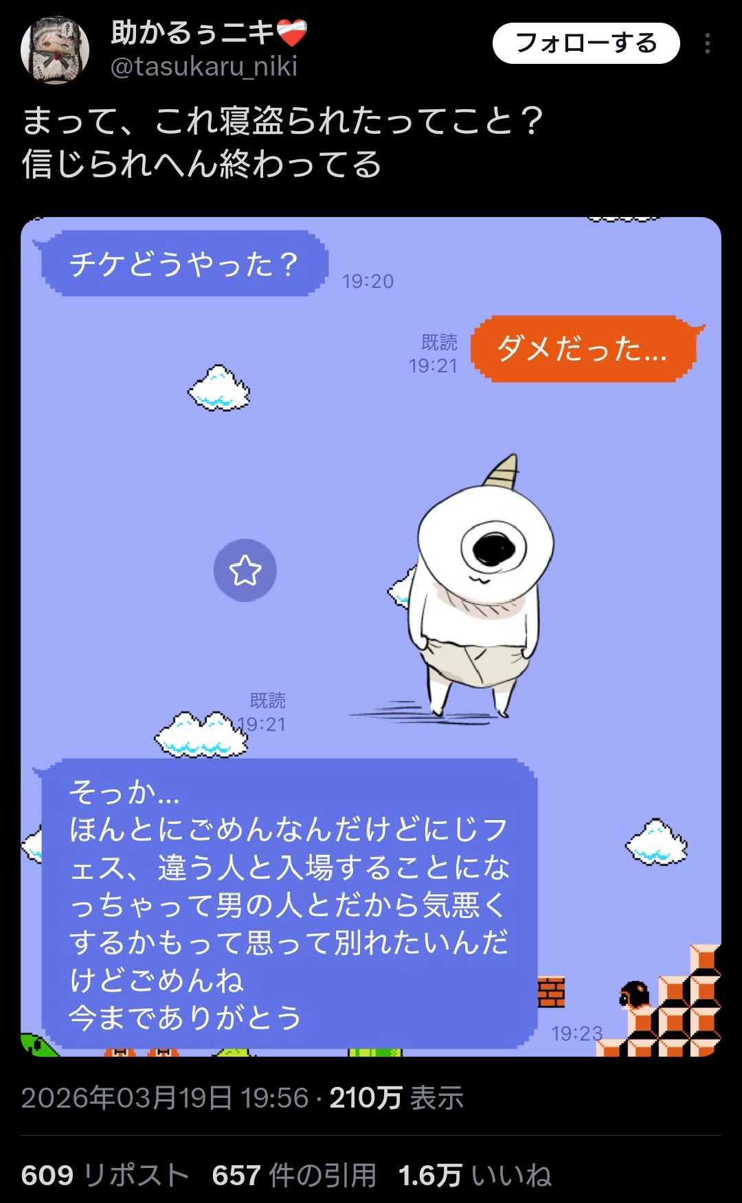 | … | 326/03/20(金)12:26:48No.1412447493そうだねx55これチケット抽選前に浮気してない? |