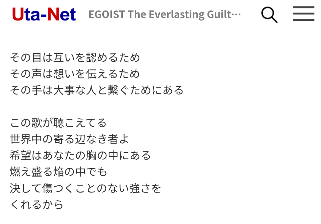 | … | 12726/03/20(金)14:35:03No.1412482103そうだねx2ギルティクラウンのOP聞いてたら似たようなフレーズ出てきてて最悪だった |