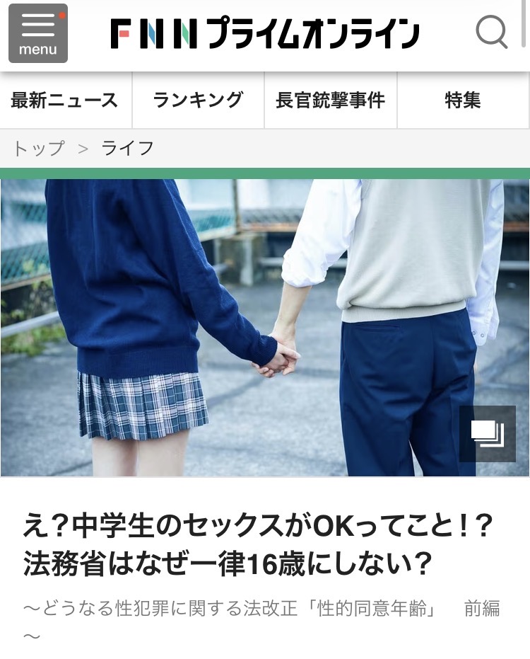 | … | 526/03/20(金)21:29:21No.1412611686そうだねx7>審議会では『13歳の子どもが性的にきちんと判断するなんて無理です』とデータや論文を提示して反対する委員もいると聞きます。 |