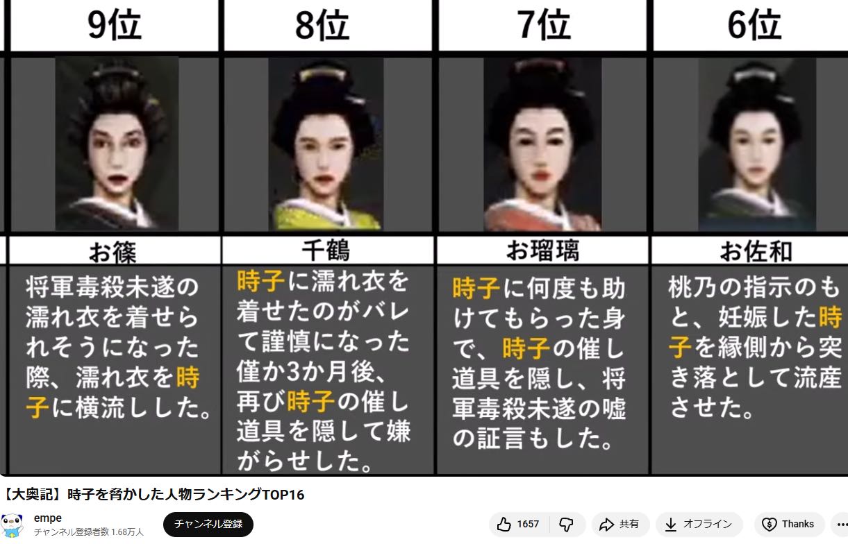 | … | 126/03/21(土)08:41:26No.1412725396そうだねx5この程度で怖がってたら大奥に転生した時やっていけないよ? |