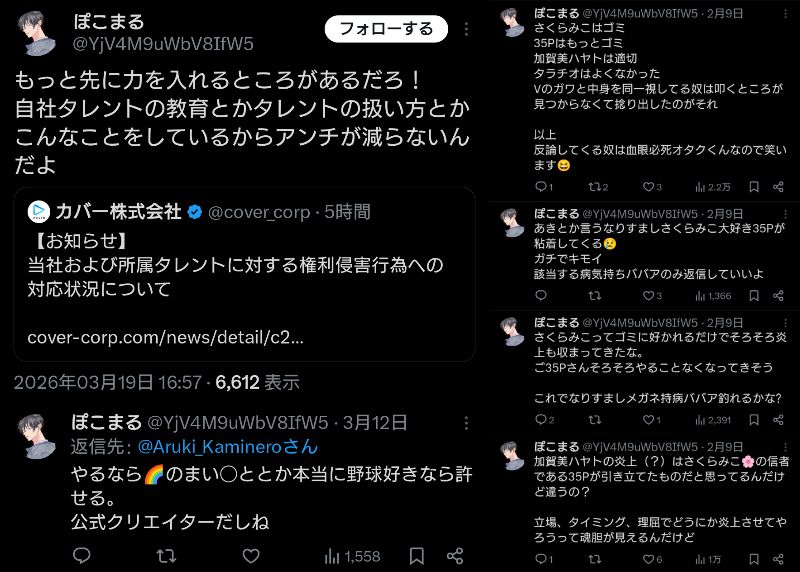 | … | 3026/03/21(土)10:31:15No.1412743116そうだねx23にじリスの言うホロライブの「炎上」が全部にじリスの捏造ベースなのが本当にひどい |