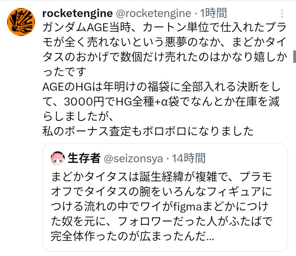 | … | 5426/03/21(土)12:37:46No.1412773108+>プラモが売れてたと思うよAGE |