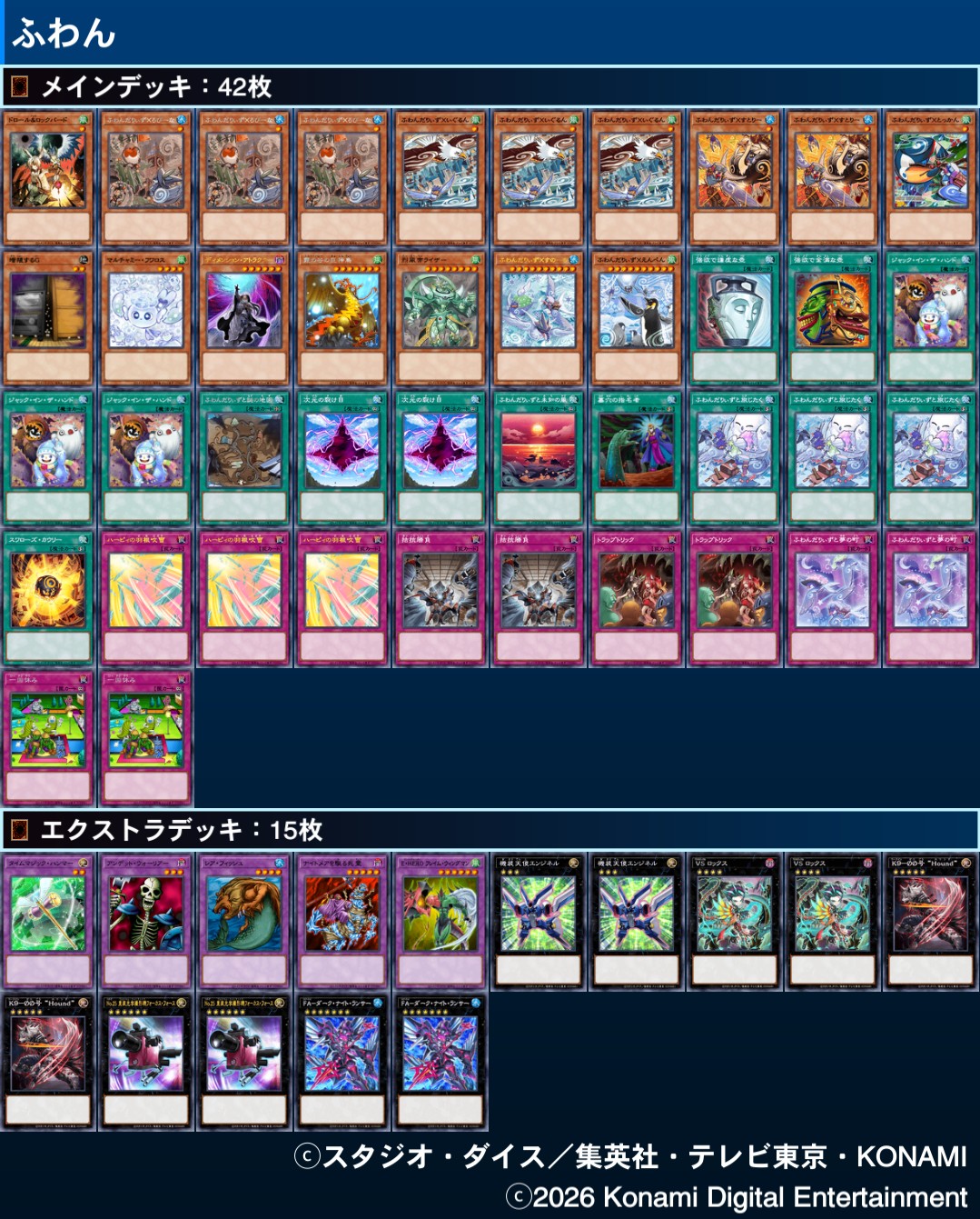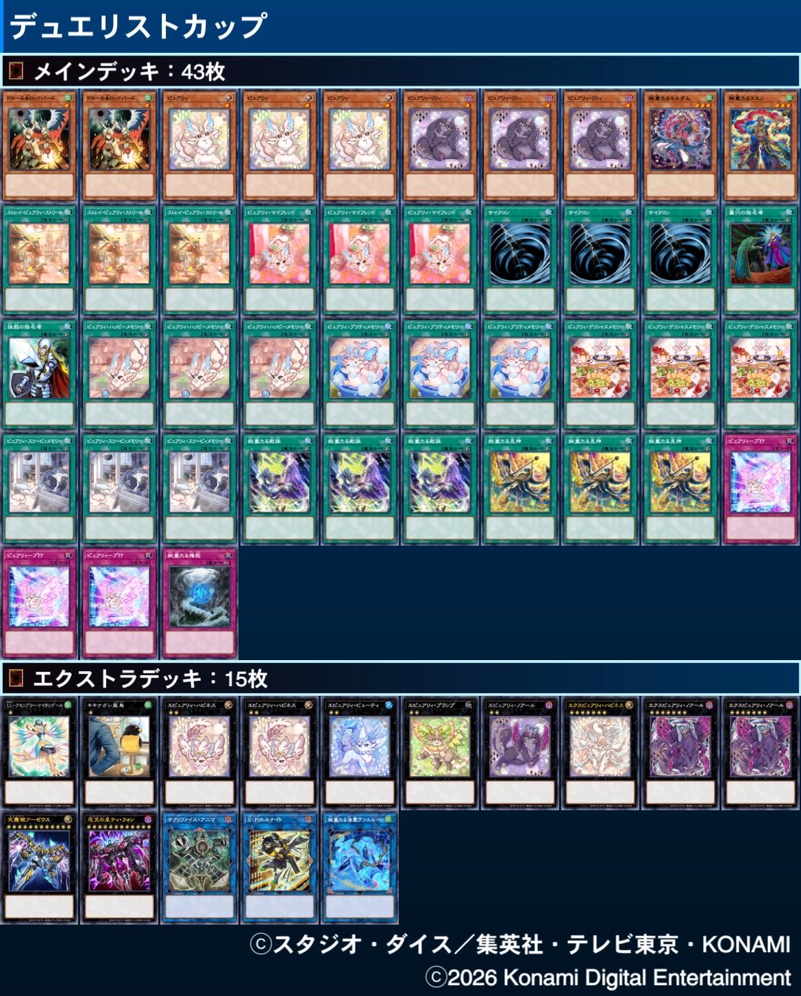 | … | 1026/03/21(土)17:38:29No.1412856496そうだねx2俺もデュエリストカップ1st突破したデッキ晒していい? |