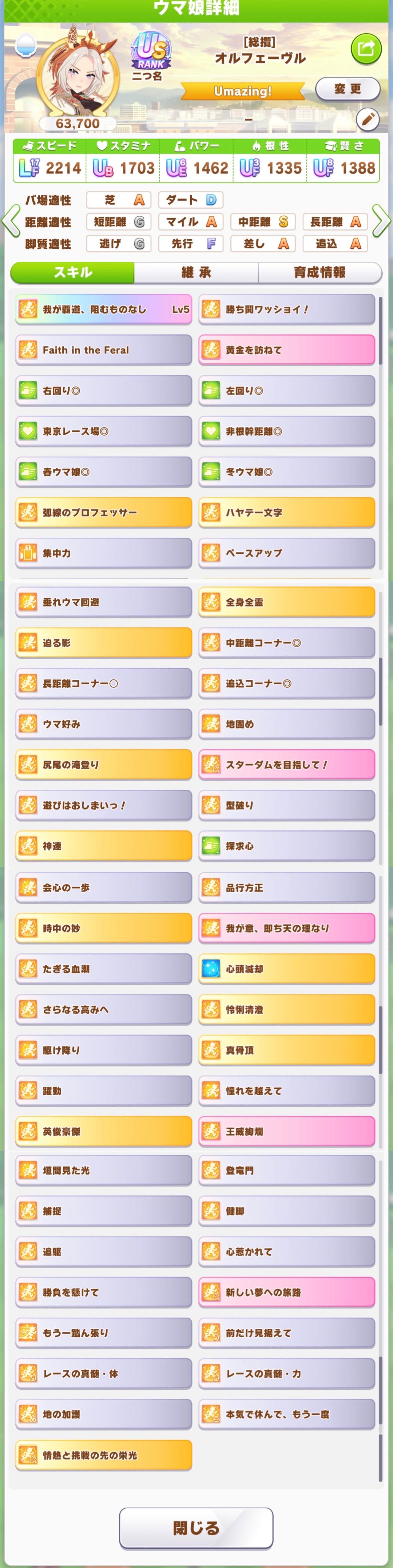 | … | 1226/03/21(土)18:20:20No.1412869314+パワー1600優先してスタ1500台の人とかよく見るのだ |