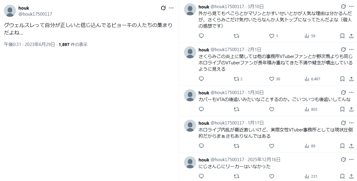 | … | 326/03/21(土)21:49:20No.1412952224そうだねx7ホロに放火するときのテンプレなのかホロ粘着みんなポストするよね |