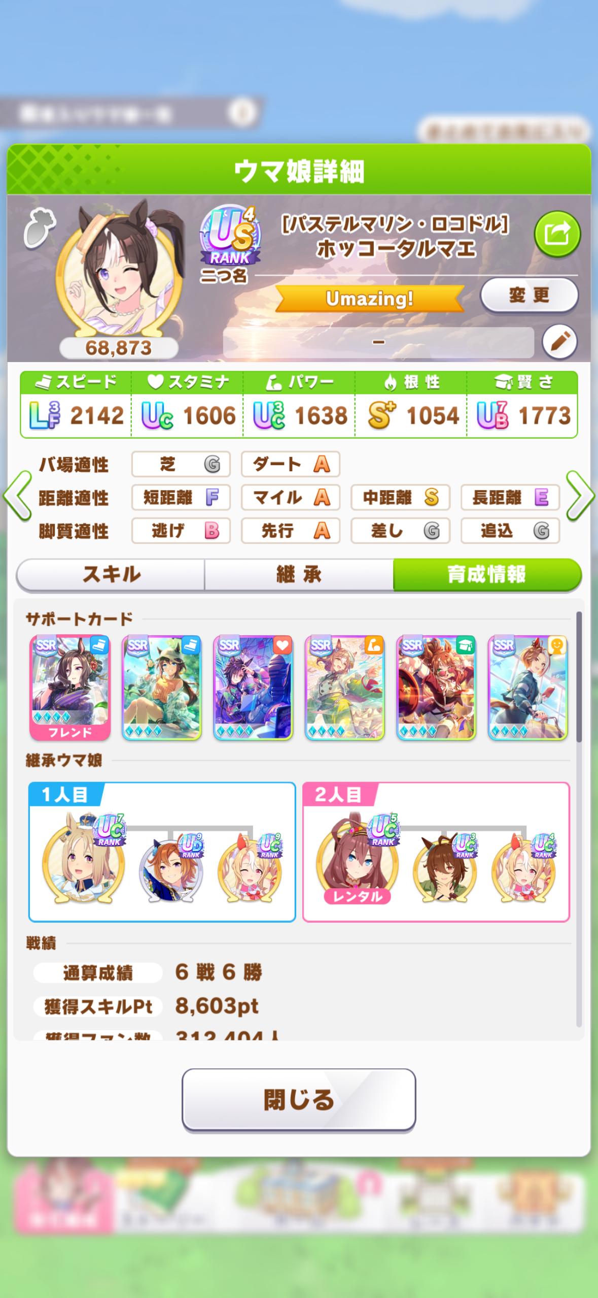 | … | 8426/03/21(土)23:27:49 ID:ZHfHIaoENo.1412992359+>あの…今月の因子使い回せると思って育成してたら来月2200mじゃありませんでした >その因子で育てた水タルさんがSP8600で切れちゃってどうしましょうか… >fu6445698.jpg ふふっ! 私も上振れた切れ推しに非根幹積んでるので恥ずかしいですよ |