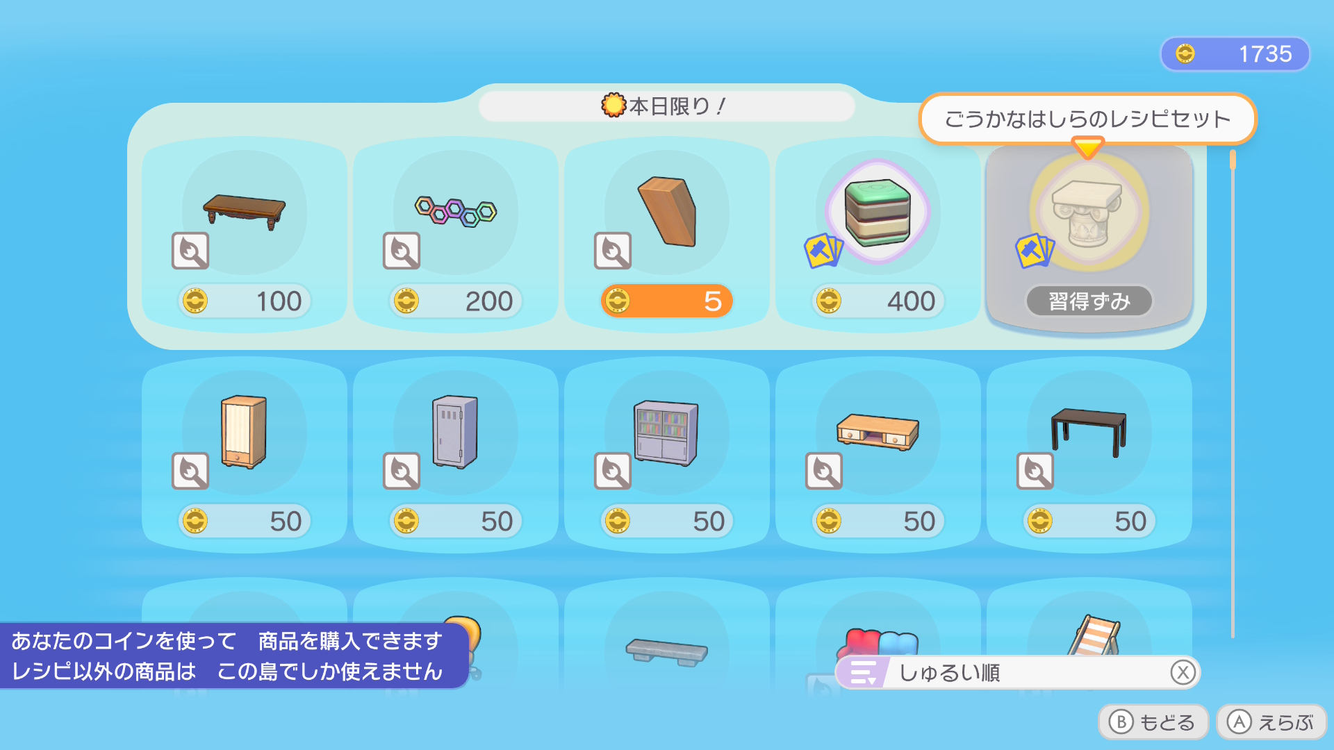 | … | 6326/03/22(日)12:46:42No.1413129211+日替わりショップにレシピじゃない建材系並んでると舐めとんのかという気持ちが抑えられない |