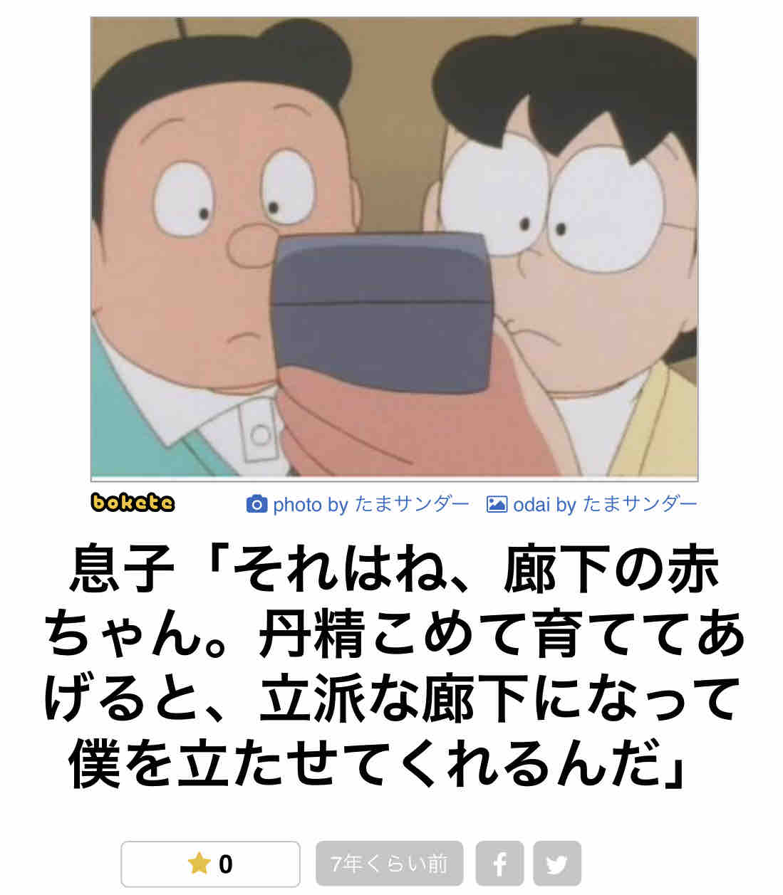 | … | 1226/03/22(日)16:06:40No.1413186065+>たまサンダーではのび太→廊下に立たされるネタが流行ってるのでその変形と思われる |