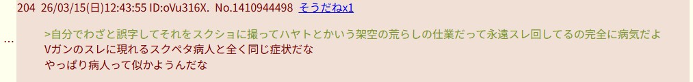 | … | 21126/03/22(日)17:25:26No.1413211262+>>いつもの病人だろ |
