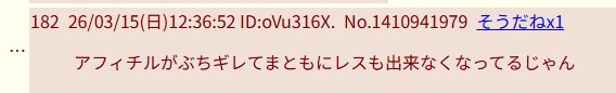 | … | 21326/03/22(日)17:25:53No.1413211438+>アフィチルが本気でぶちギレていらっしゃる |