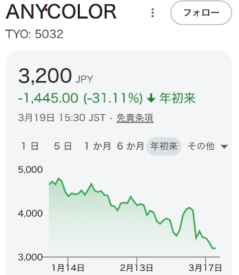 | … | 26926/03/22(日)22:37:35No.1413343544+>>なんならanycolorの株でも買って配当金ぐらい受け取ったら良いじゃんか |