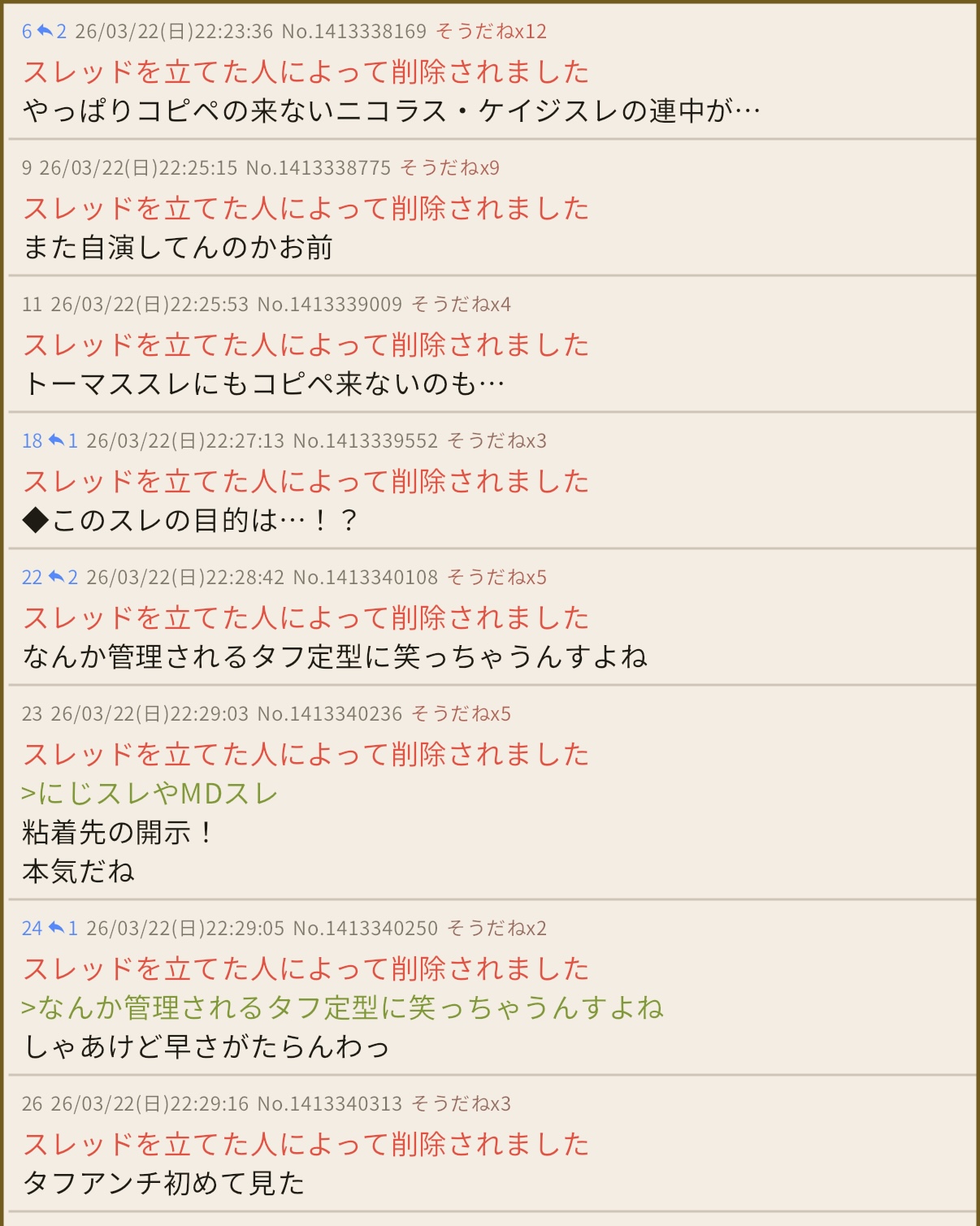 | … | 8126/03/22(日)21:53:50No.1413326358そうだねx6今日深夜帯からピーナッツの粘着スレ建ててはにじさんじがー剣持がーしてたの残ってるぞ |