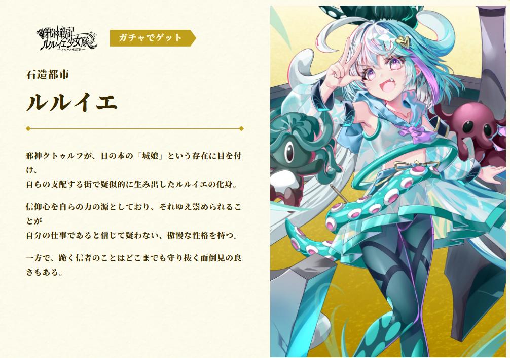 | … | 926/03/22(日)22:03:46No.1413330365そうだねx14>石造都市 >ルルイエ > >邪神クトゥルフが、日の本の「城娘」という存在に目を付け、 >自らの支配する街で疑似的に生み出したルルイエの化身。 クトゥルフ様は何やってるのだ…? |