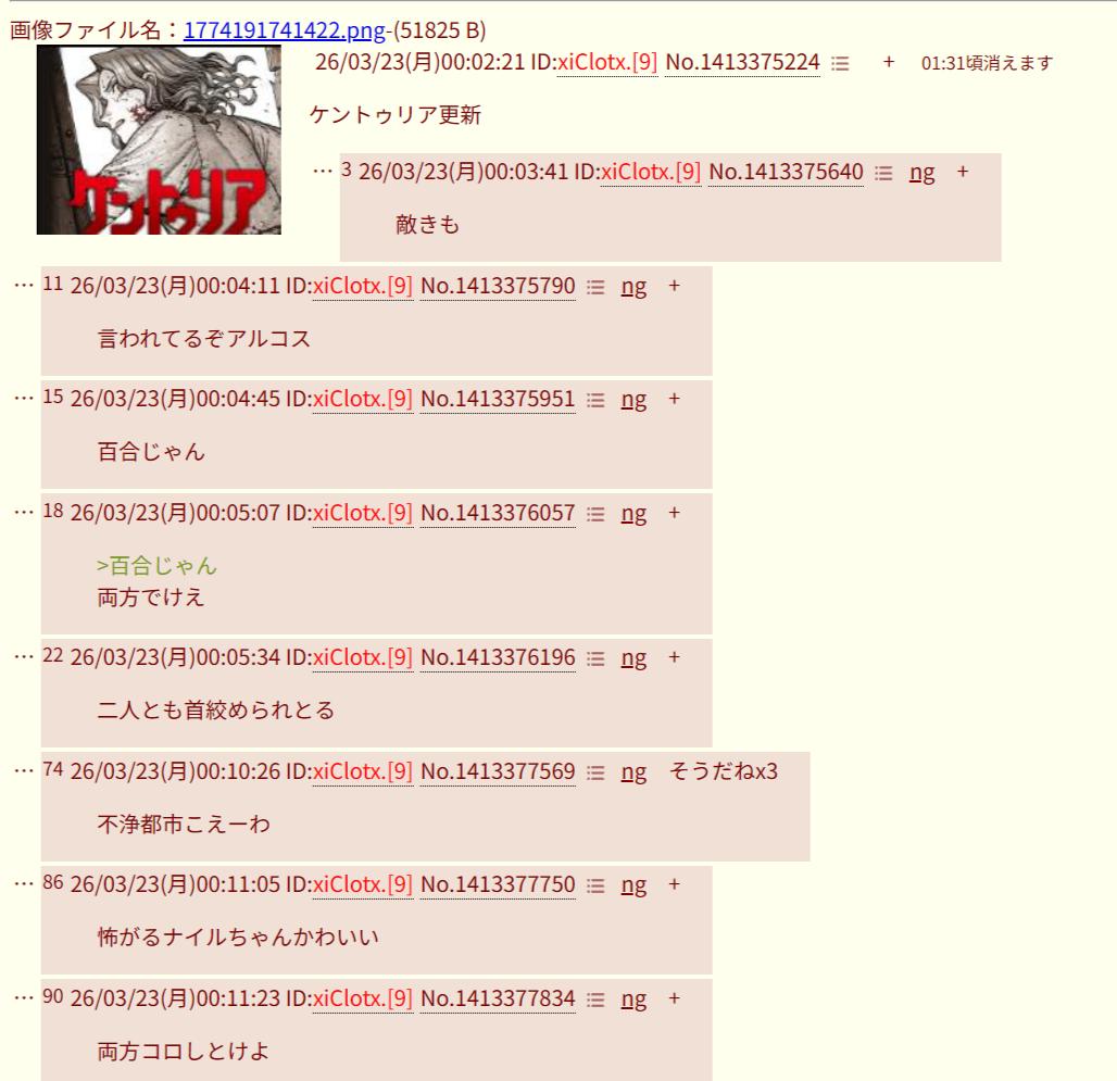 | … | 9026/03/23(月)00:11:23No.1413377834そうだねx1両方コロしとけよ |