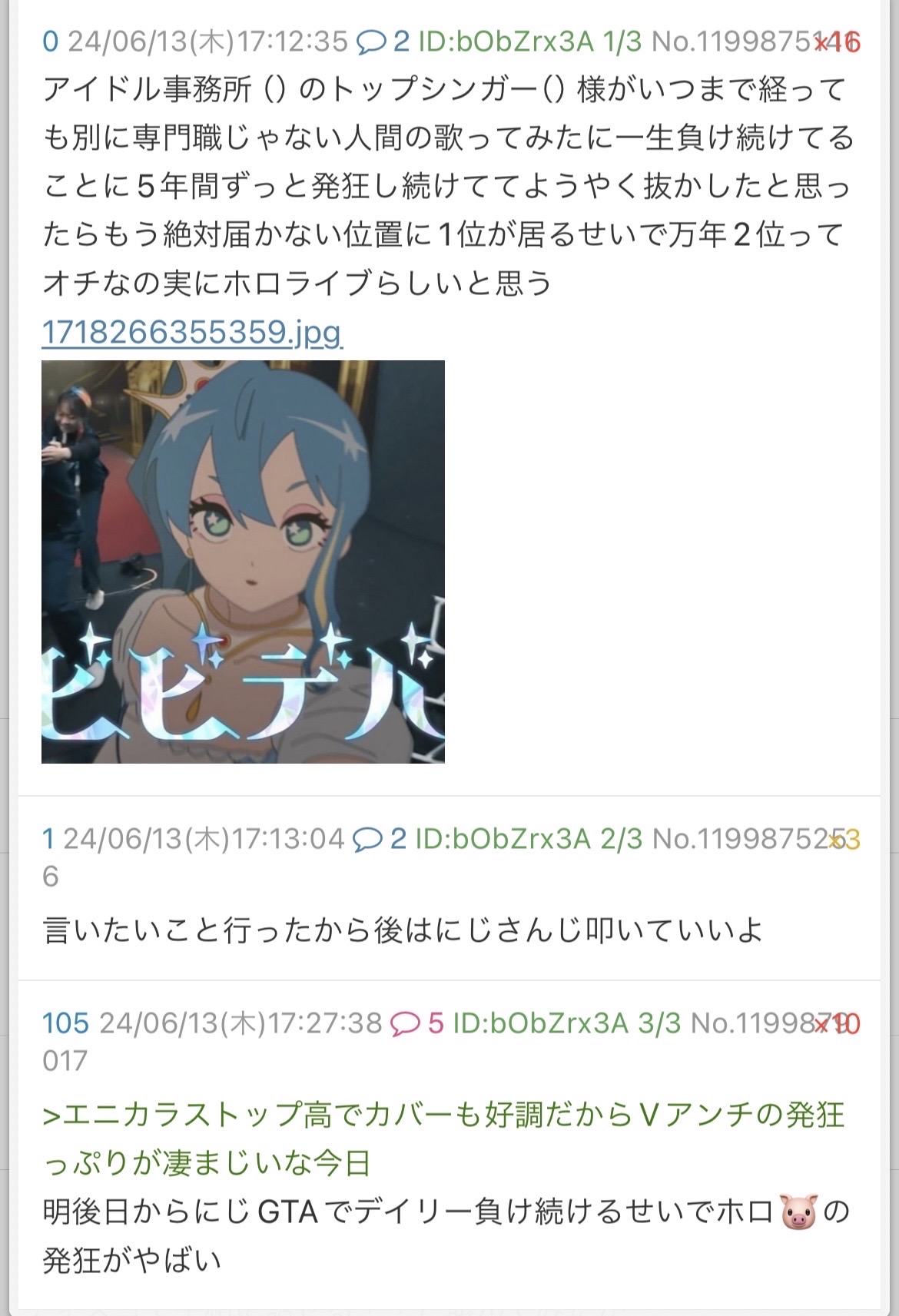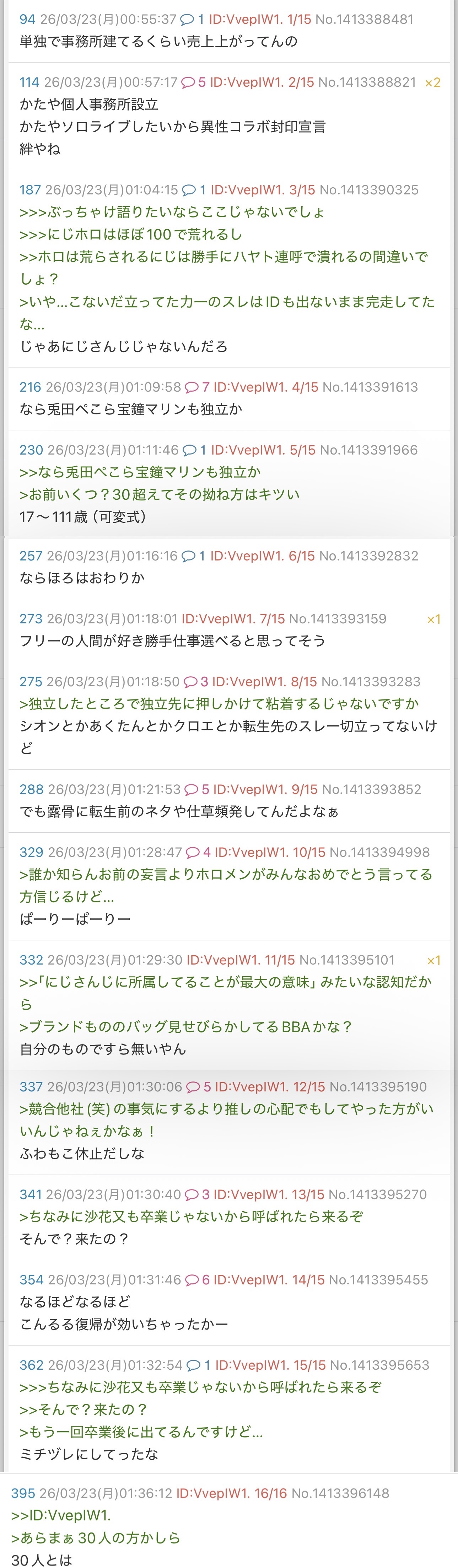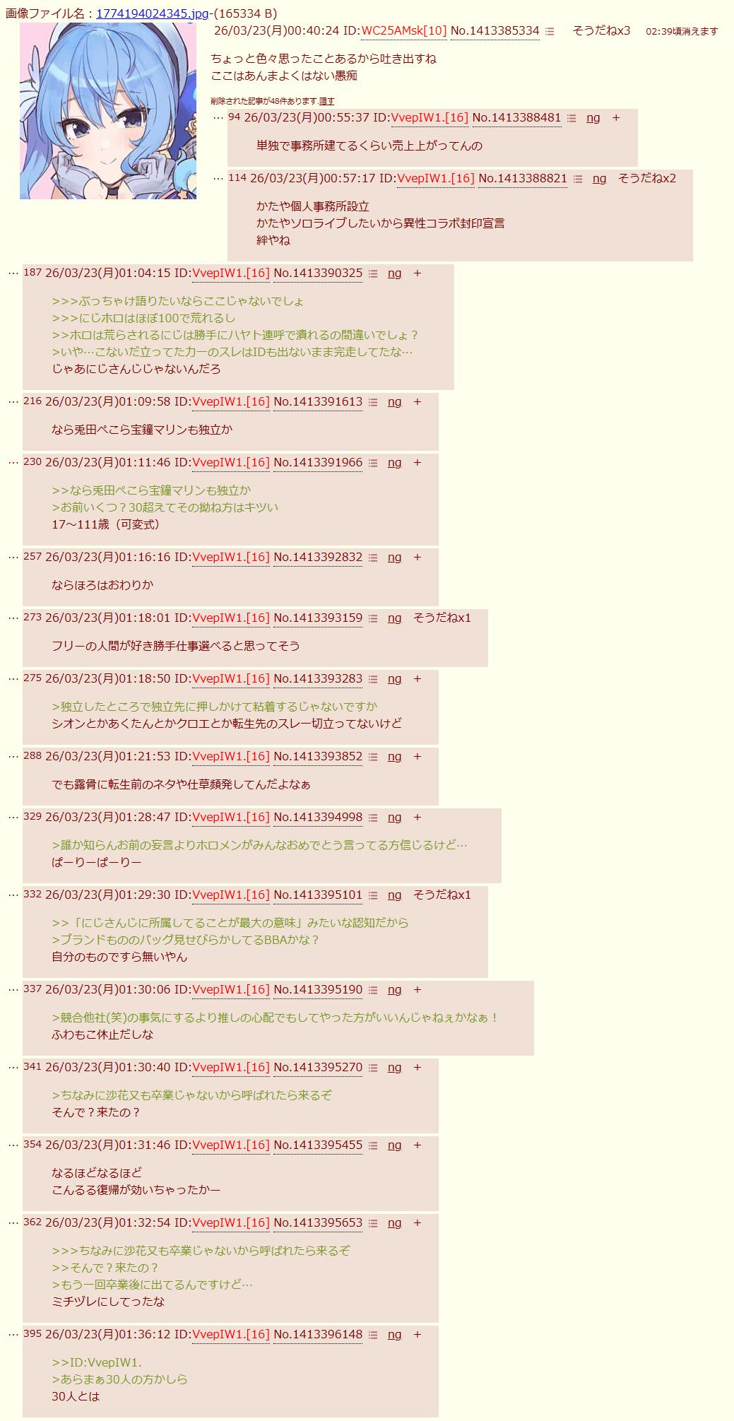| … | 6226/03/23(月)00:50:44No.1413387532そうだねx18>あと正式に0期生表記が消えたりホロ所属感薄くしててちょい悲しい…新レーベルアピールのためなんだろうが |