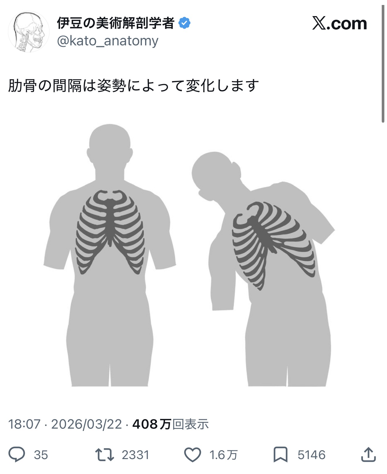 | … | 826/03/23(月)05:48:01No.1413409835そうだねx19あの時知らないおっさんの肋骨が広がっていたという新知識を得た |