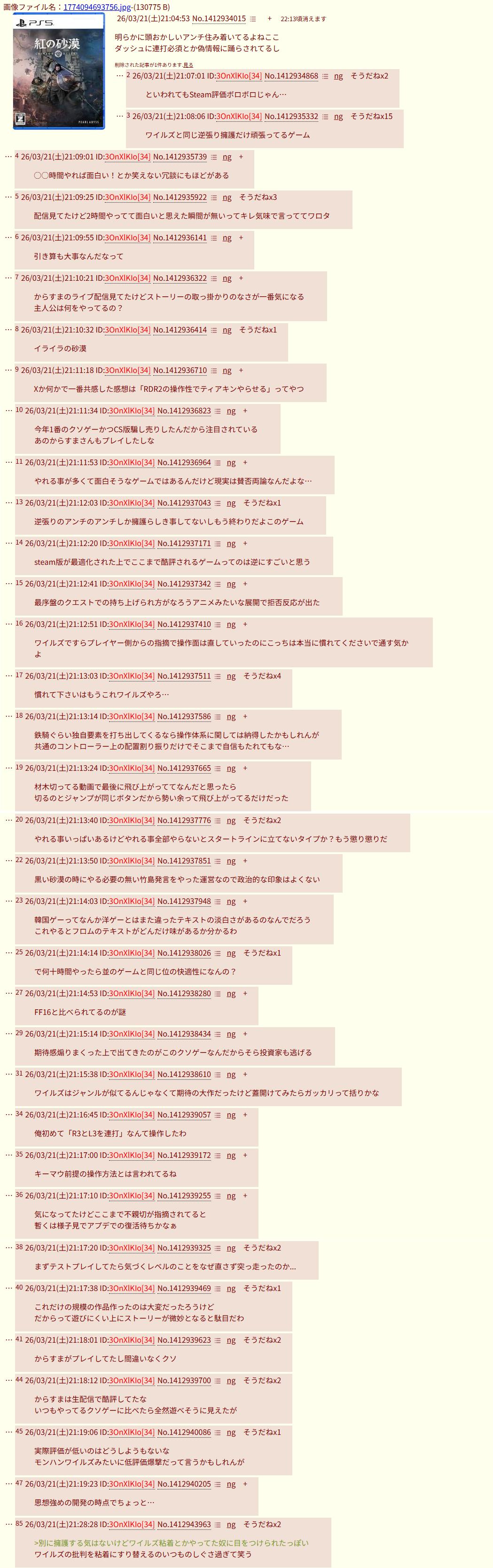 | … | 56426/03/23(月)10:41:55No.1413442462そうだねx4>>このスレだけに限らんけどなんでエアプな奴ほど語気が粗いのか謎すぎる… |