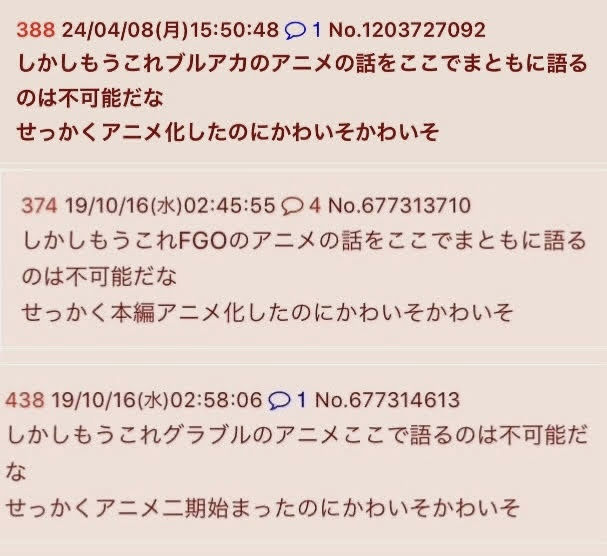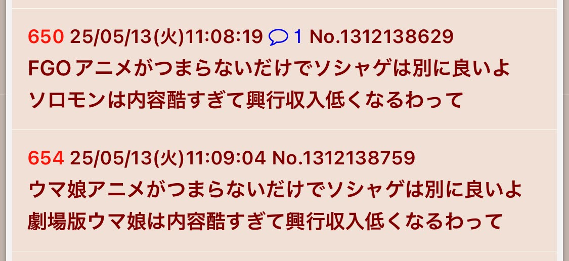 | … | 60926/03/23(月)11:05:42No.1413446541+>少しでも否を唱えたらアンチ |