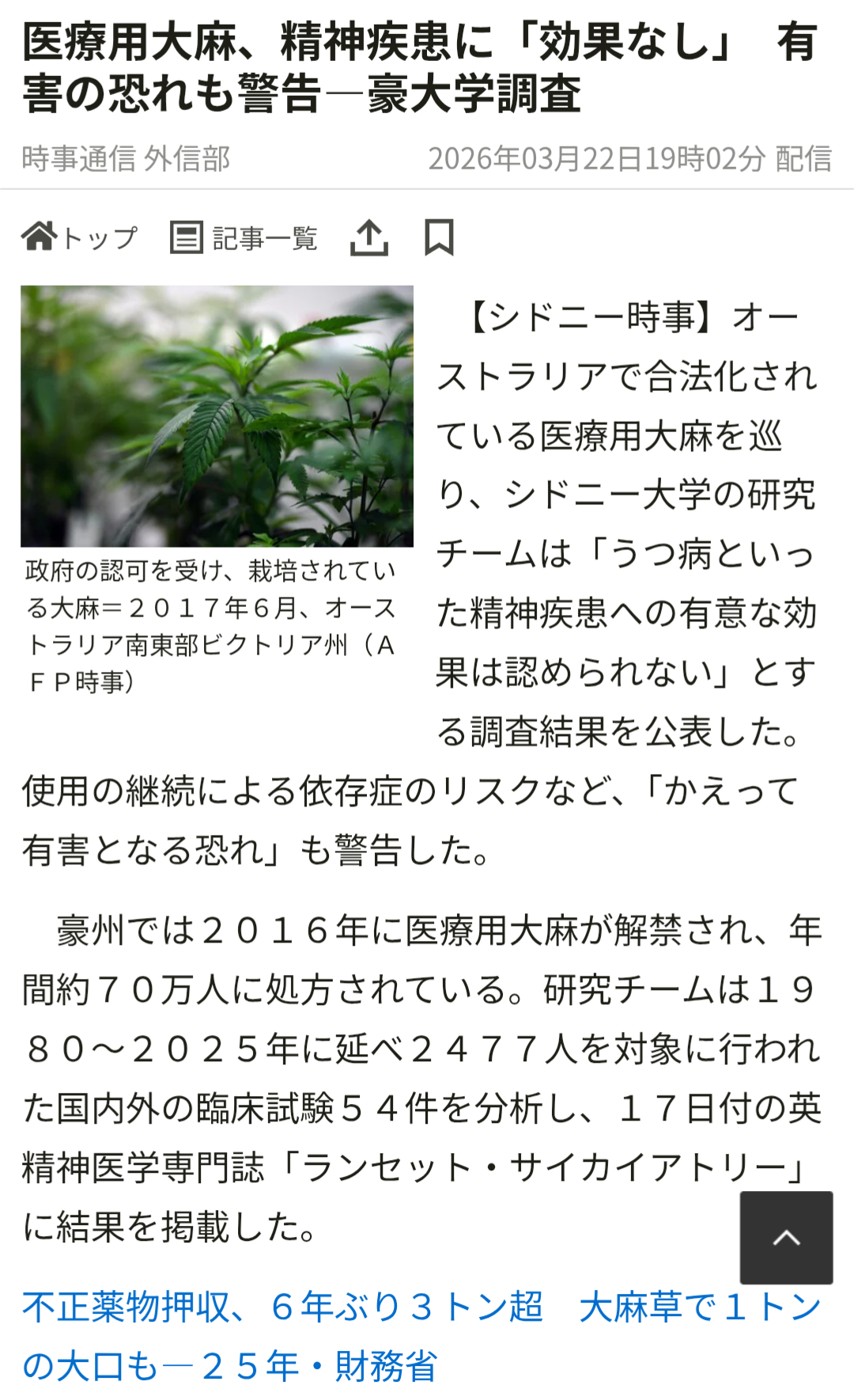 | … | 126/03/23(月)13:24:30No.1413480328そうだねx4大麻推進派の根拠が消えた |