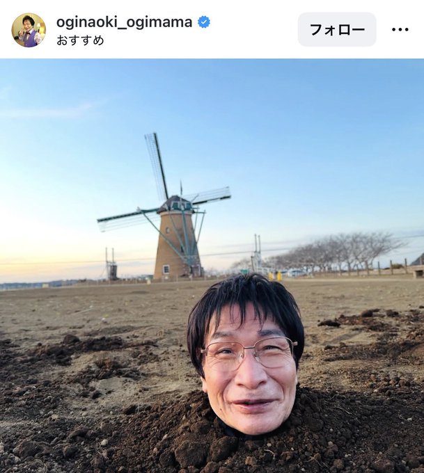 | … | 3626/03/23(月)14:59:32No.1413499670そうだねx1>このショッキングな写真は、10日放送の『相席食堂』(ABCテレビ)での一コマ。尾木ママが千葉県佐倉市を訪れた際、担当した女性ディレクターの“演出”として、土に埋まることになったという。 |