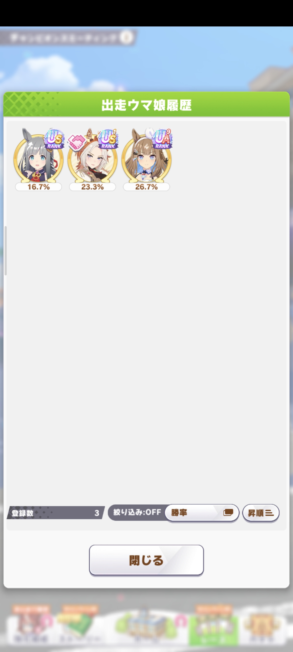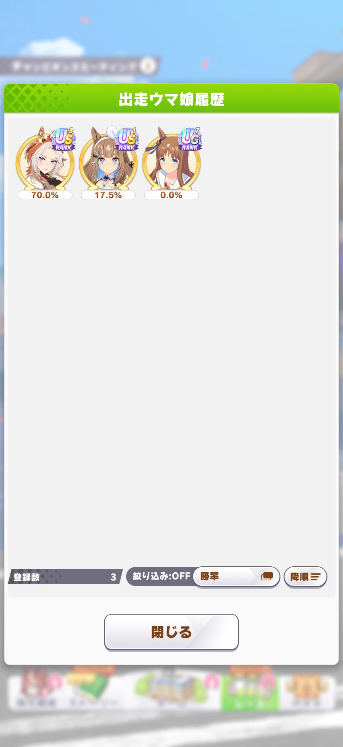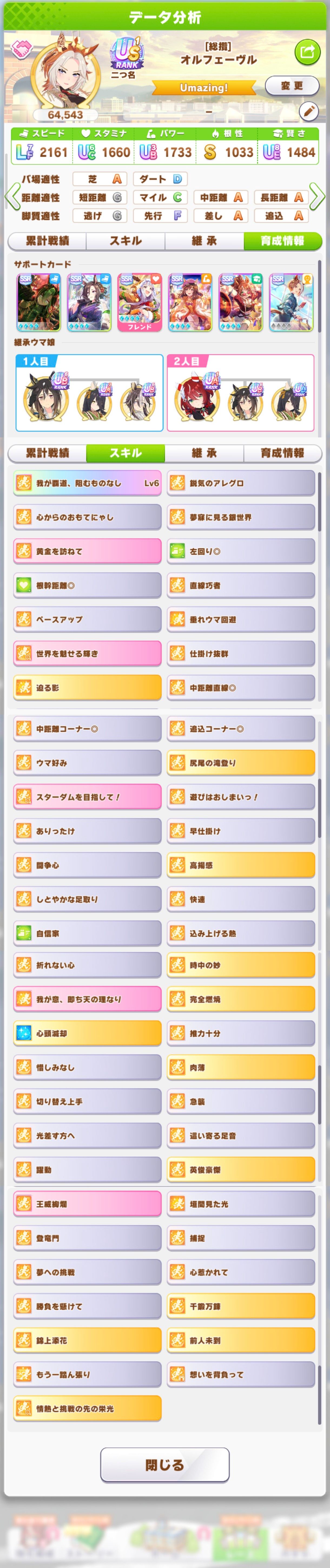 | … | 2726/03/23(月)15:16:23No.1413503329+usまで行ってると流石にステはほとんど完成しててスキルの問題になってるタイプの子が多いのだ |