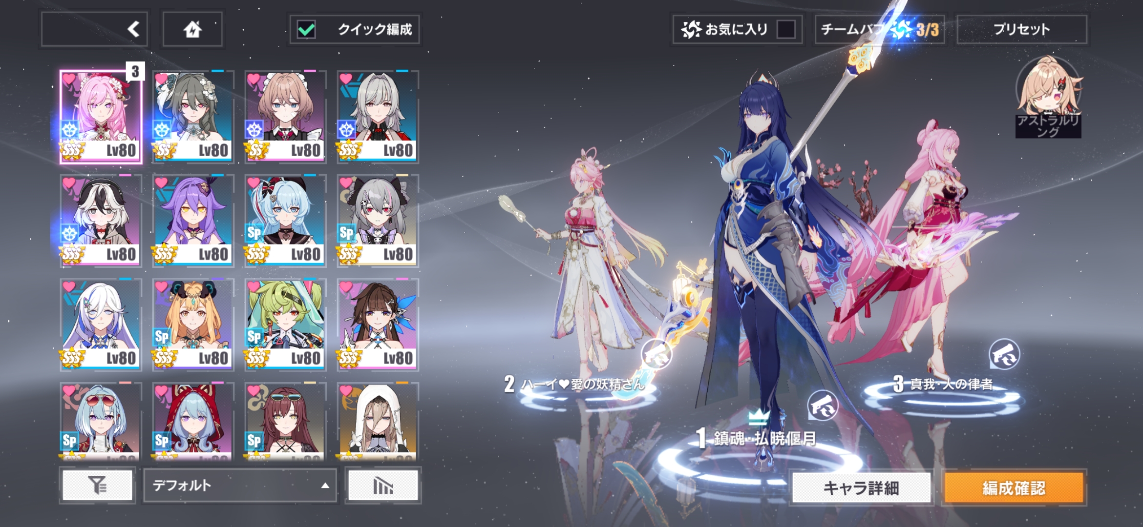 | … | 8326/03/23(月)22:05:13No.1413632695+神の鍵でアストラルリング対応出来る律者さんかな…あと次verで神の鍵来る乳にゃんの先行投資してもいいと思う |