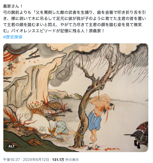 | … | 3526/03/23(月)22:02:35No.1413631596+敗北者側だとこういう悪人エピ盛られたりするけど源氏の偉人だしな… |