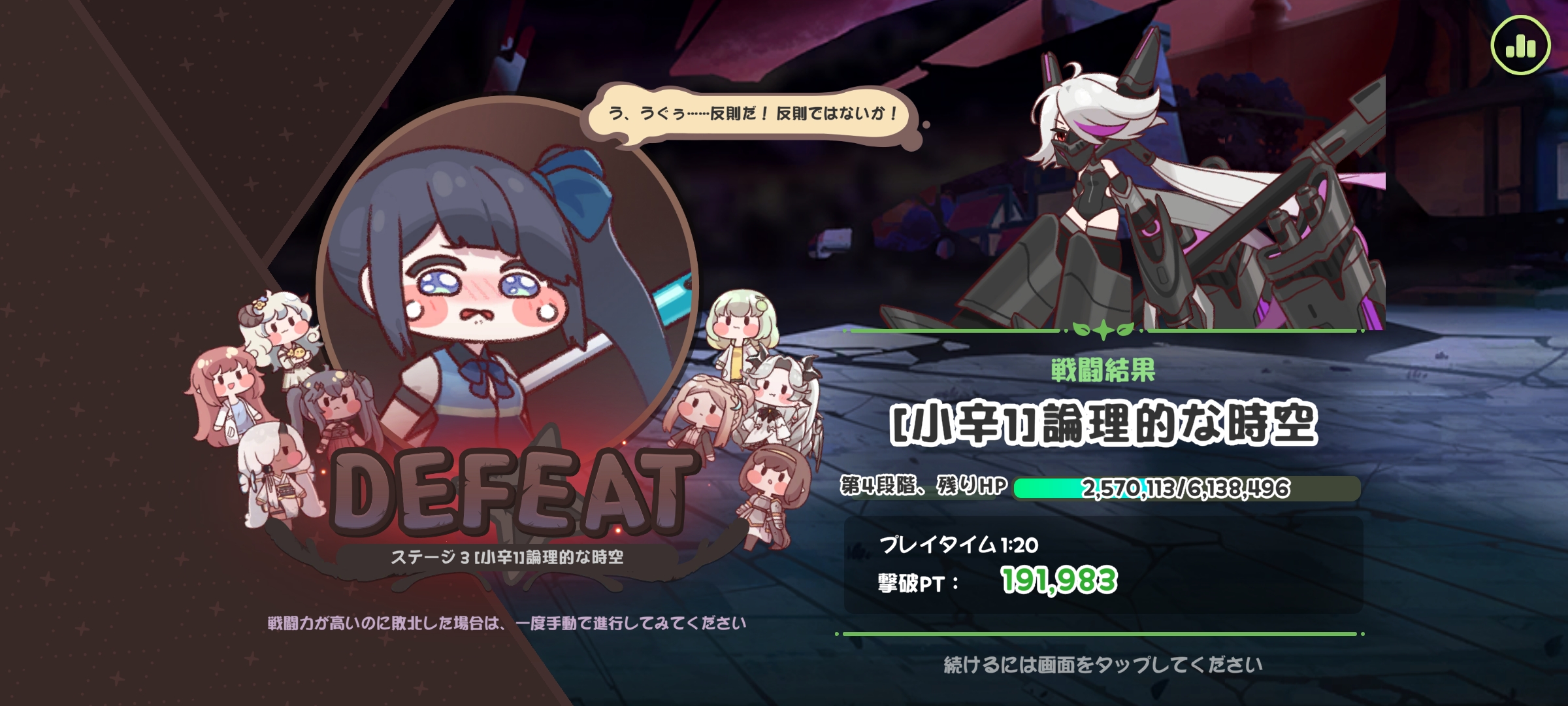 | … | 32926/03/24(火)00:06:38 ID:6weJDcgcNo.1413680211+>殺意の塊のような攻撃的な編成にゃん |