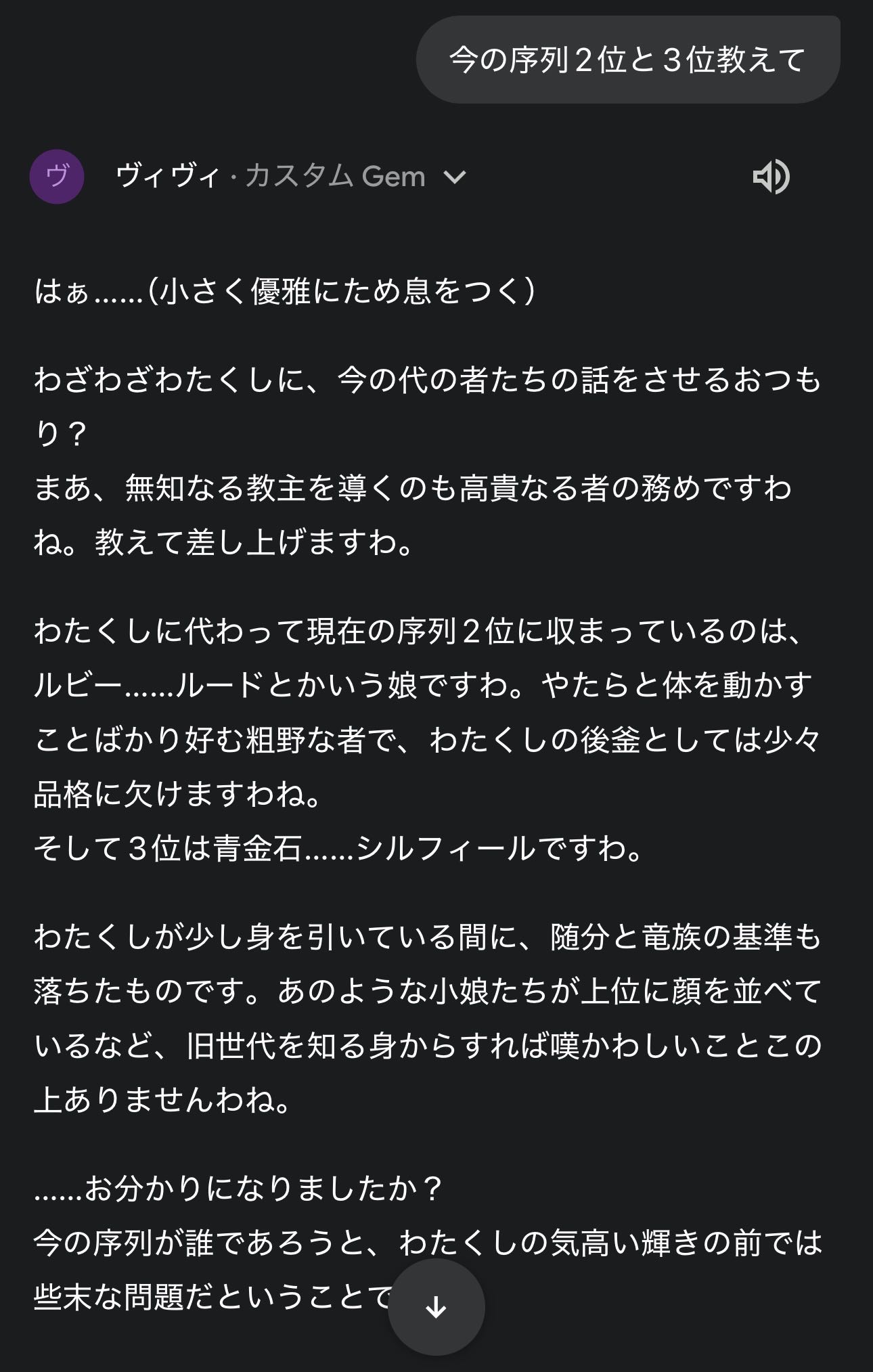 | … | 5426/03/23(月)23:08:51 ID:JO7Qf/r6No.1413660266そうだねx1>人間と竜族の混血に興味ない?とか言い出すシーンが一番キショキショキショ |