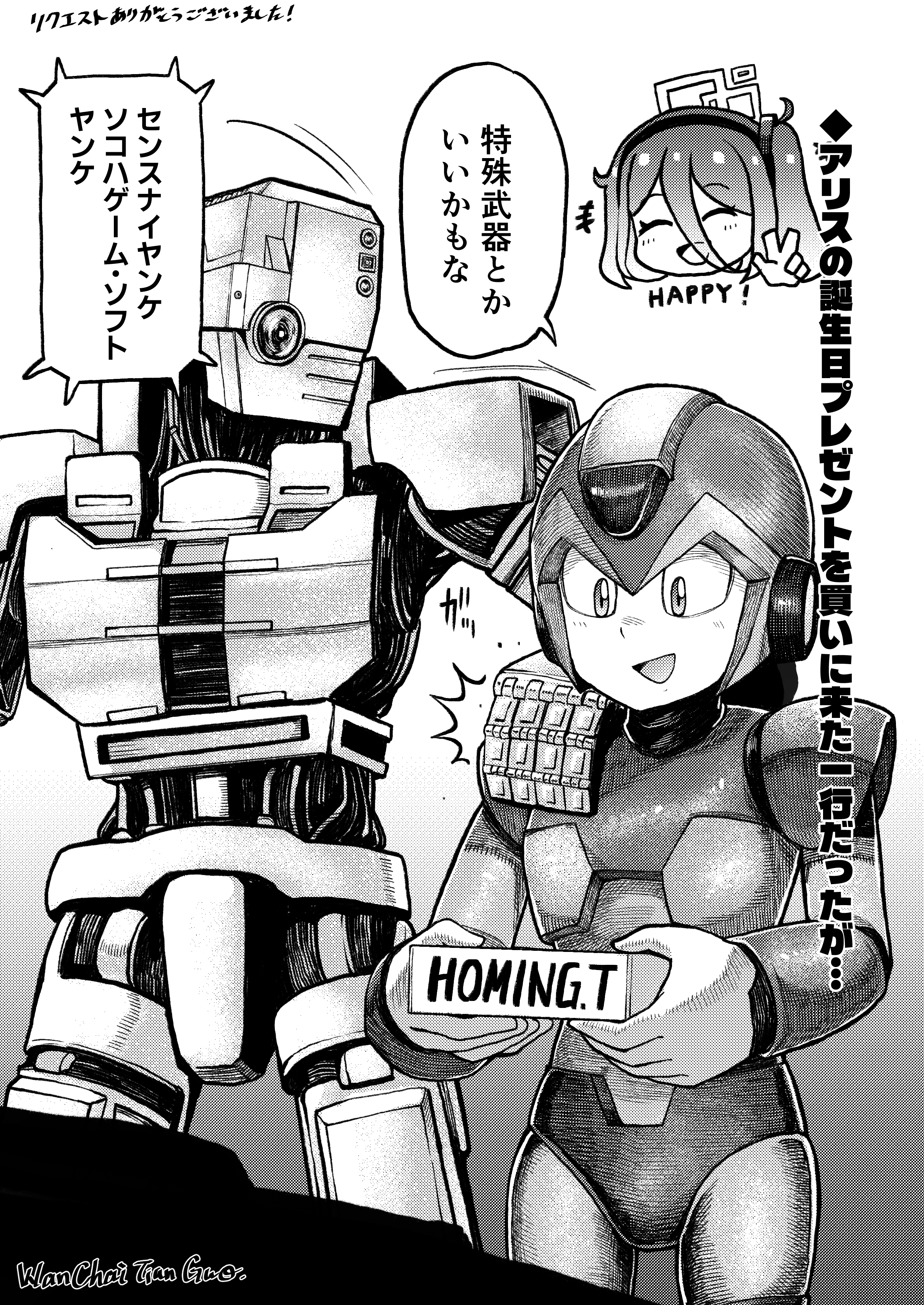 「アリス(ブルーアーカイブ)への誕生日プレゼントを買いに行って悩んでいるトダー(TOUGH龍を継ぐ者)とエックス(ロックマンX)をお願いします。...」