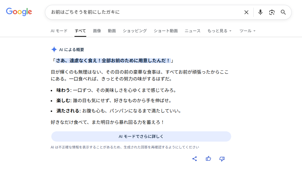 どうでもいいけどスレ画を求めて検索したらGeminiがなんかおかしなことになった