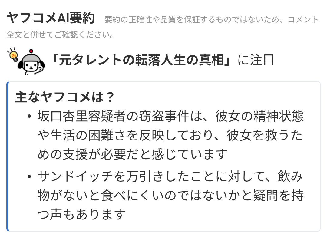 元タレントの坂口杏里容疑者 サンドイッチ1個万引き疑いで逮捕このスレは古いので、もうすぐ消えます。