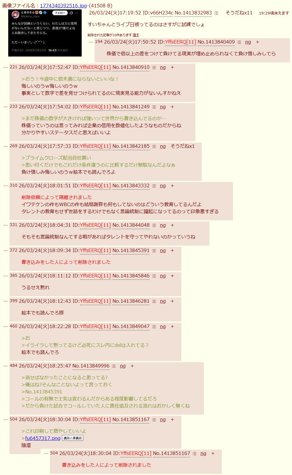 | … | 226/03/24(火)17:21:06No.1413833254そうだねx22またホロ粘着スレ |