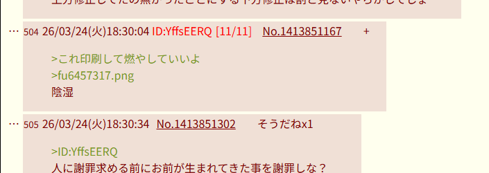 | … | 46526/03/24(火)18:23:21No.1413849308そうだねx5>ID:YffsEERQ |