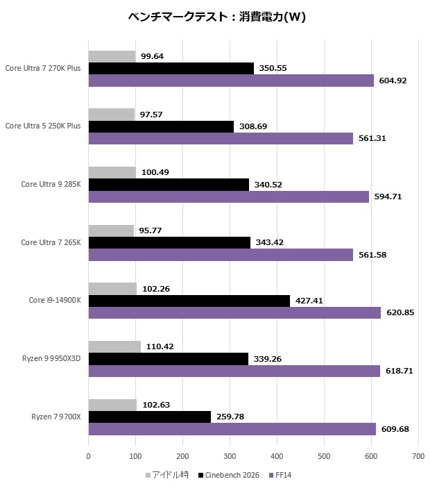FF14ベンチのPC全体消費電力はどれだけGPUを働かせるかどうかだからCPUの消費電力を語るには不適切