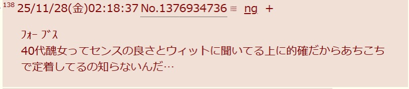 | … | 326/03/24(火)21:25:29No.1413912633そうだねx1そんな定番ワードだったの40代醜女… |