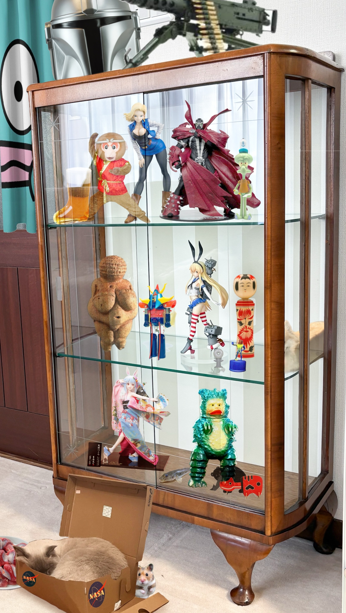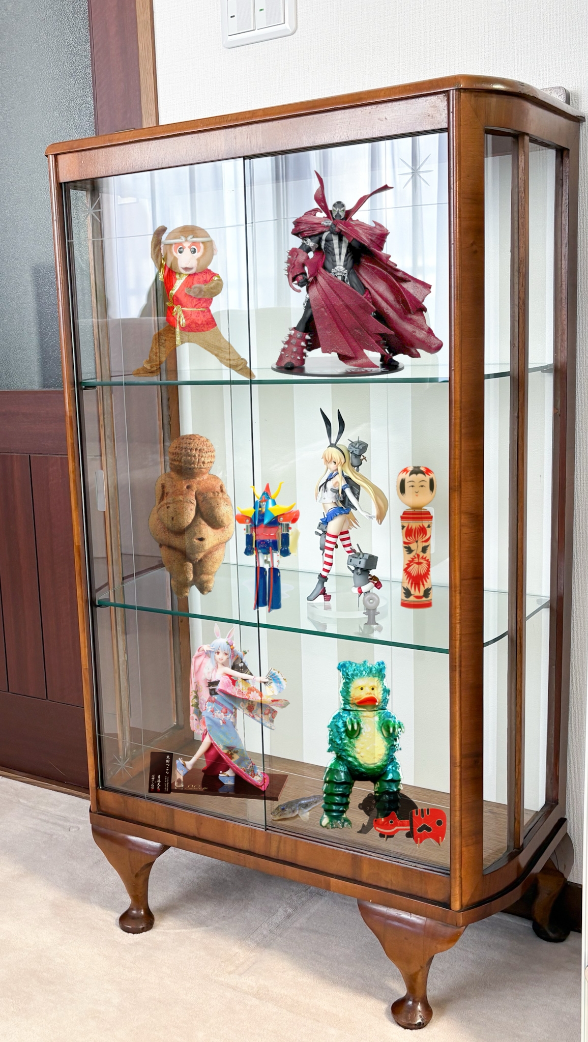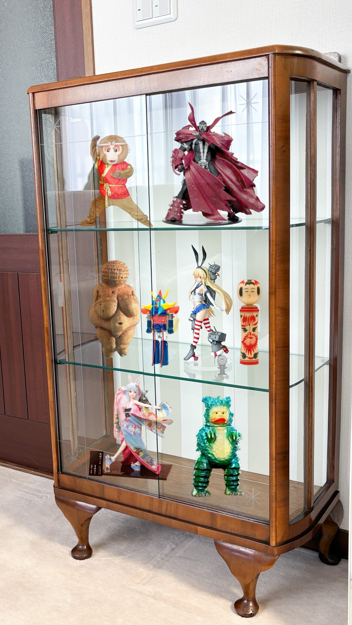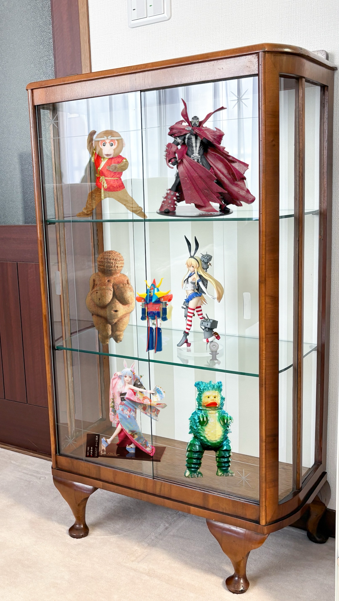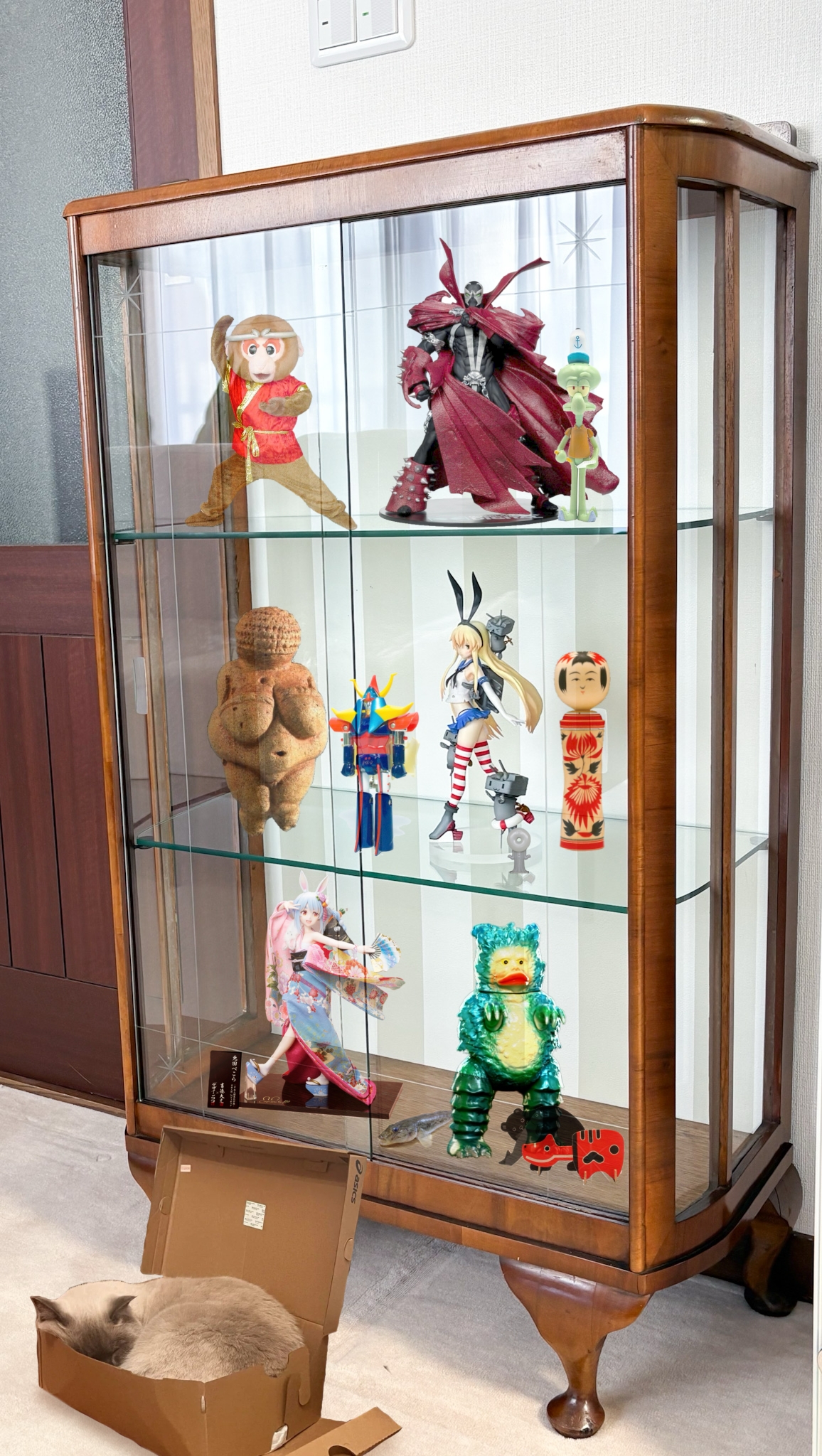 | … | 7626/03/25(水)07:54:44No.1414021440+実家にあったいい感じのガラスケースにとりあえず並べられそうなもの並べた感じ |