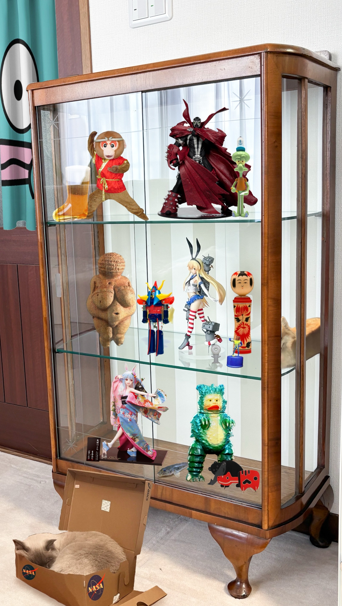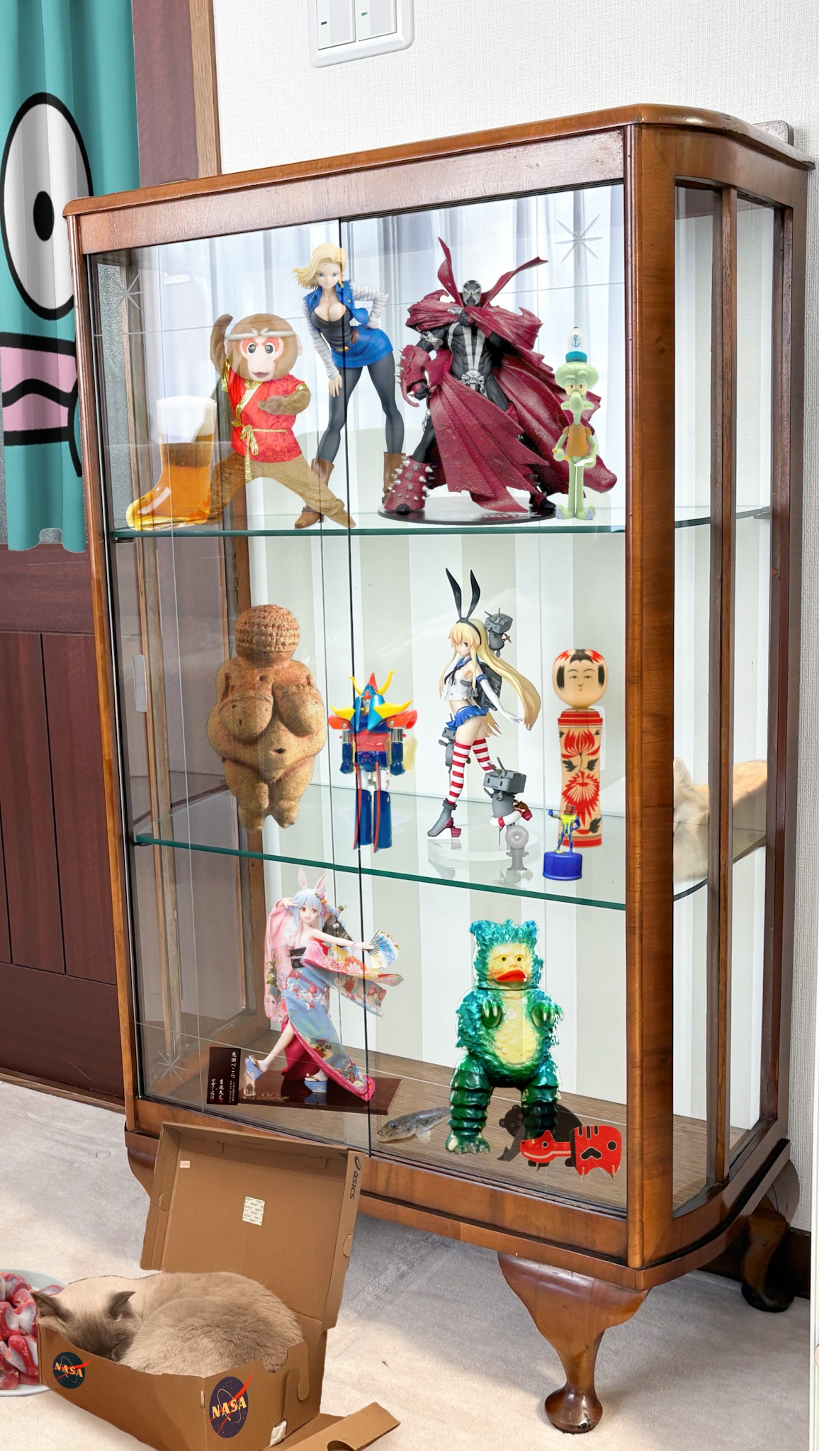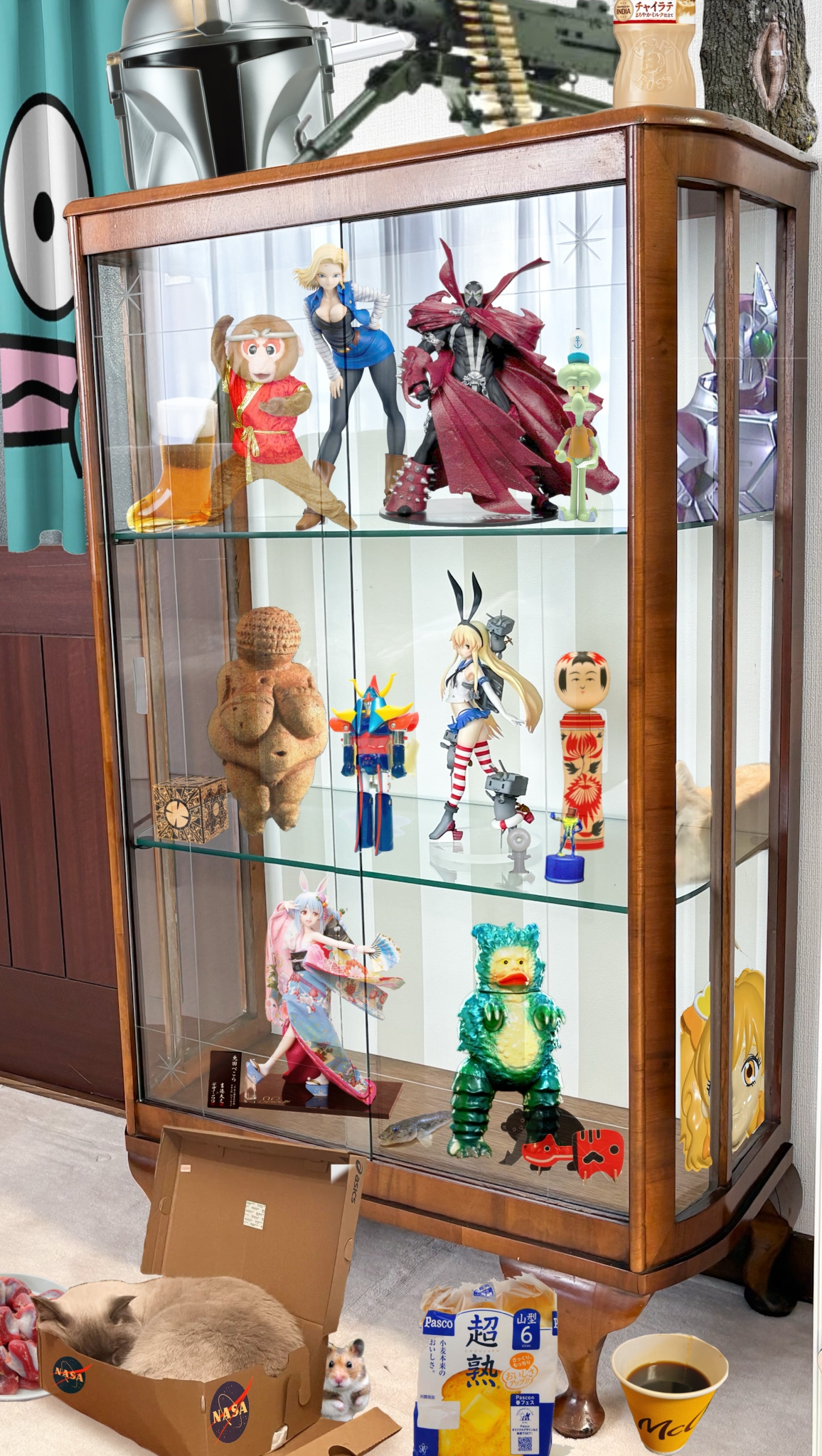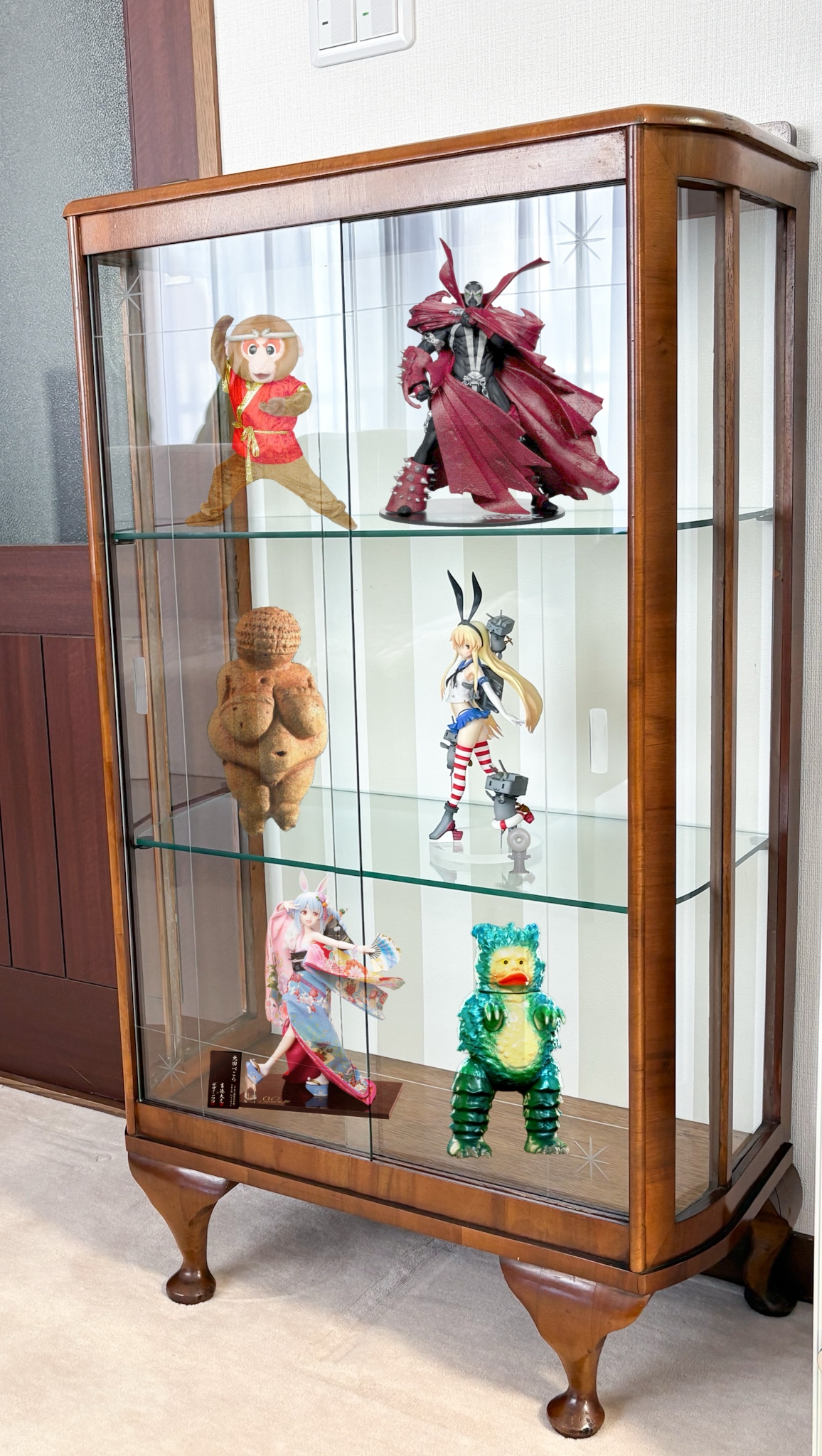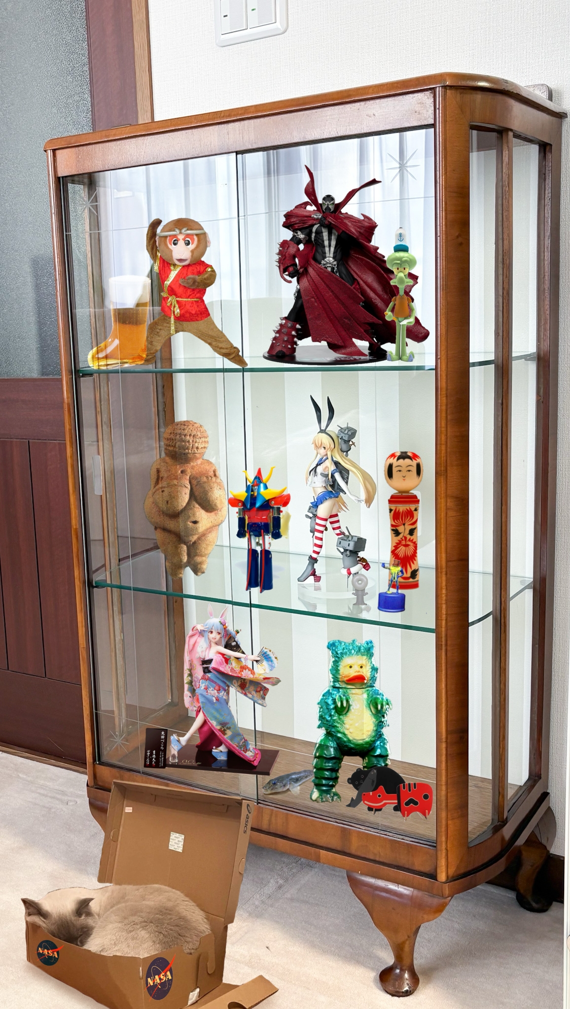 | … | 7626/03/25(水)07:54:44No.1414021440+実家にあったいい感じのガラスケースにとりあえず並べられそうなもの並べた感じ |