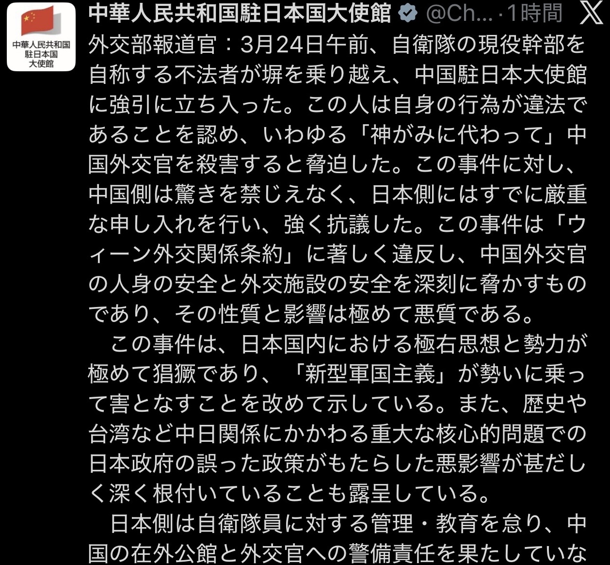 | … | 826/03/25(水)17:06:38No.1414129012+>大嫌いな中国が得するだけなのも分からないでこんなことしちゃう人間に国防が務まるんでせうか |
