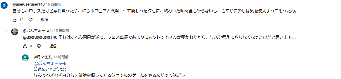 | … | 2826/03/25(水)17:24:26No.1414132913そうだねx1ここで暴れてるような奴らが寄ってくるからVコラボは忌避されるんですね |